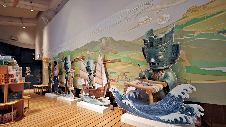 展場另設文創專區,推出三星堆手袋、青銅器造型抱枕、太陽神鳥文具、面罩冰箱貼等周邊商品,兼具美觀、收藏與教育意義。部分產品獲三星堆博物館授權,讓香港觀眾也能將文物設計帶回家。