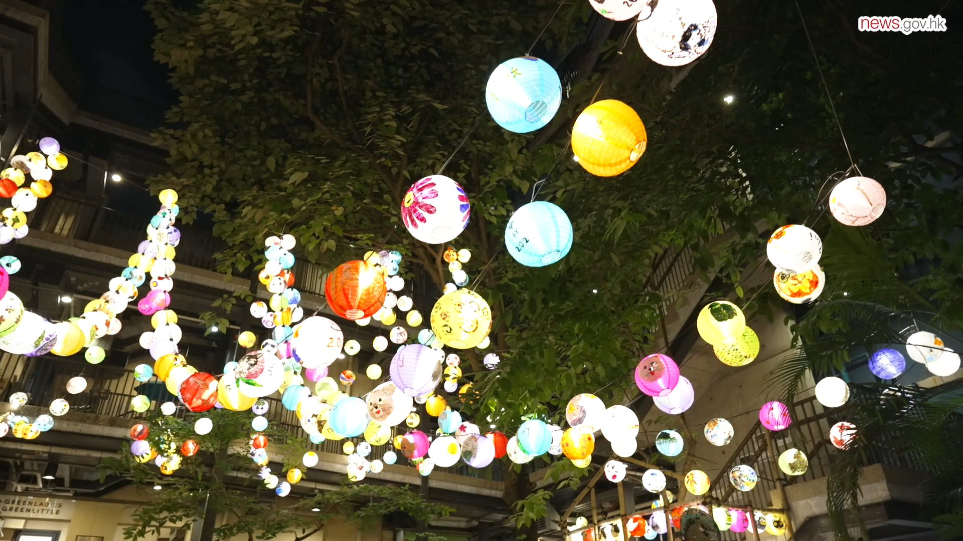 義工合力把數百個填滿圖案、祝福字詞的燈籠串起,掛滿藍屋,倍添喜慶;Mahir更在灣仔居民的帶領下參觀藍屋,細看這幢一級歷史建築。