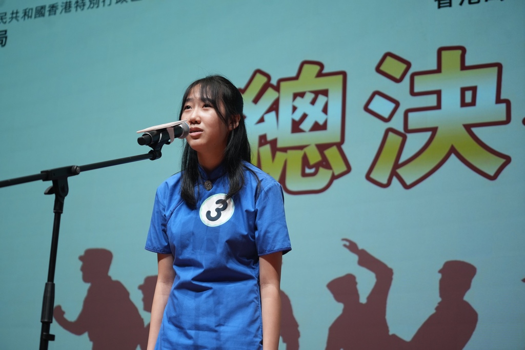 決賽現場,參賽選手們以飽含深情的語調,再現抗戰歲月中華兒女的英勇事跡:有的講述潮籍華僑捐款支援前線的赤子之心,有的還原戰時學生救亡宣傳的熱血場景,生動的敘述與鏗鏘的朗誦,多次引發現場觀眾的共鳴掌聲,充分展現了香港青少年對抗戰歷史的深刻理解與濃厚的家國情懷。