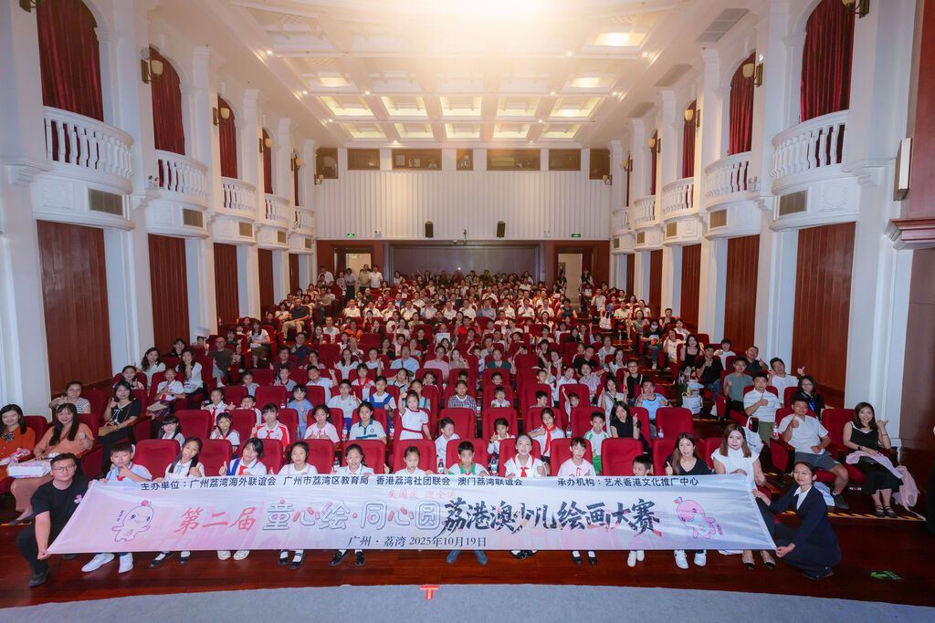 10月19日,由廣州荔灣海外聯誼會、廣州市荔灣區教育局、香港荔灣社團聯會、澳門荔灣聯誼會聯合主辦,藝術香港文化推廣中心承辦的第二屆“童心繪・同心圓”荔港澳少兒慶國慶迎全運繪畫大賽頒獎盛典,在嶺南文化厚土廣州荔灣隆重舉行。來自荔港澳三地的嘉賓、教育工作者、獲獎少兒及家長代表齊聚一堂,共赴這場“以藝賀國慶、以畫迎全運”的同心之約。獲獎學生的作品當天進行了現場展示,並於本月在粵劇藝術博物館繼續展出。