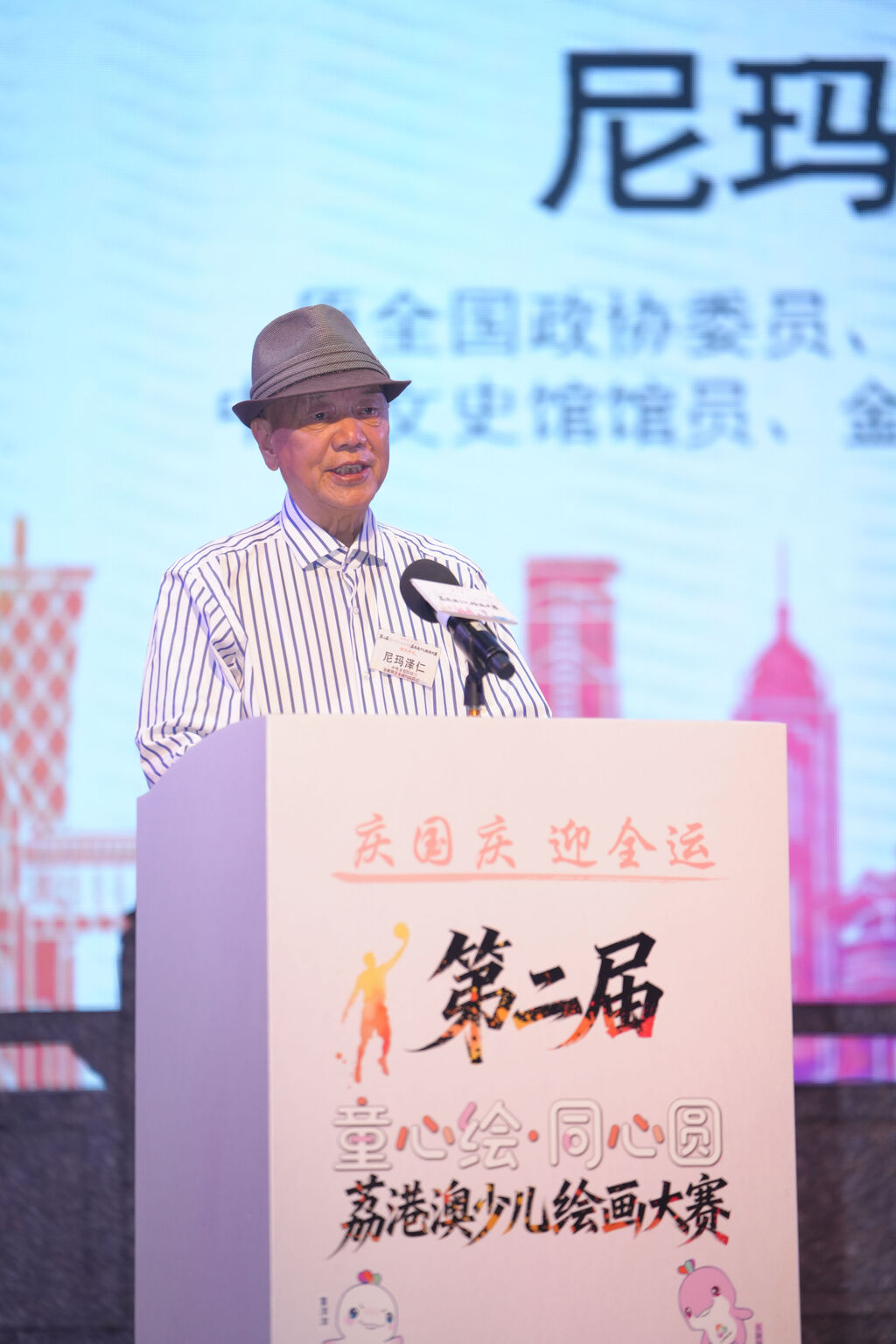 原全國政協委員、中國美協原副主席、現中央文史館員,金紫荊藝術研究院院長尼瑪澤仁強調,藝術的力量在於聯結情感,少年的力量在於延續希望,本屆大賽以“慶國慶迎全運”為主題,正是讓三地少兒在藝術薰陶中紮根中華文化、擁抱時代精神,他寄語小畫家們:手中的畫筆不僅是描繪風景的工具,更是傳遞家國情懷、記錄時代印記的載體,願孩子們永遠以童心敬祖國、以熱愛傳精神,讓荔港澳的同心之美、全運的拼搏之魂,成為未來創作中最寶貴的靈感。