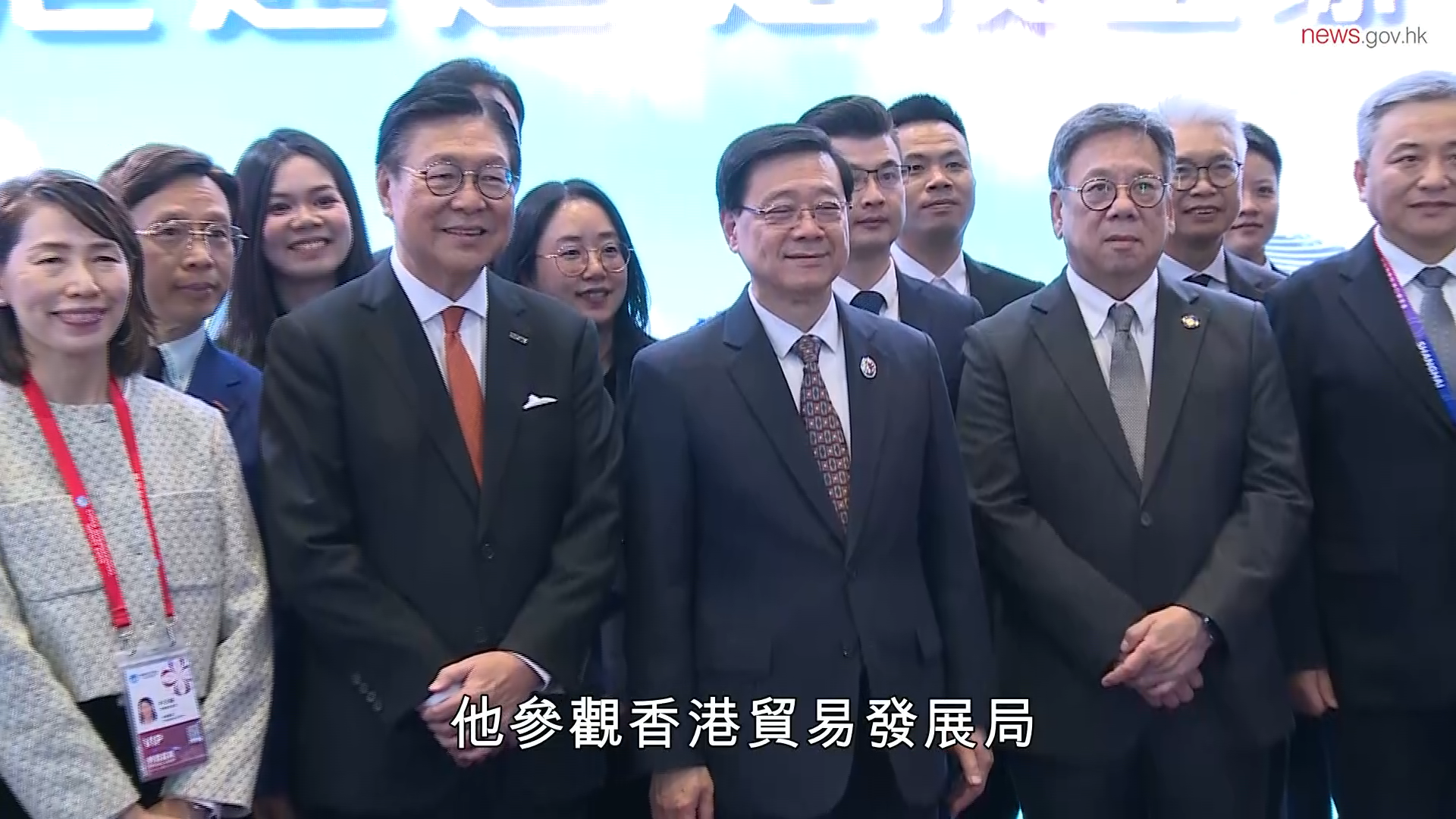 李家超下午到貿易發展局在企業商業展設立的香港食品館和香港服務業展館參觀和支持香港企業。兩個展區面積共1,500平方米,有54家香港企業參展,其中超過四成屬首度參展,涵蓋食品、創新科技、醫療科技、專業服務、物流、資訊科技等產品和服務,展示香港的品牌優勢和競爭力。