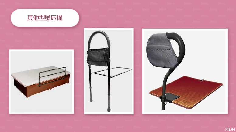 市面上床欄款式多樣,包括可調高度、可摺疊設計及附帶儲物功能的床欄,部分款式更便於攜帶,適合外出使用。選擇時應考慮床欄是否符合床高,以及長者的身體尺寸和使用習慣。