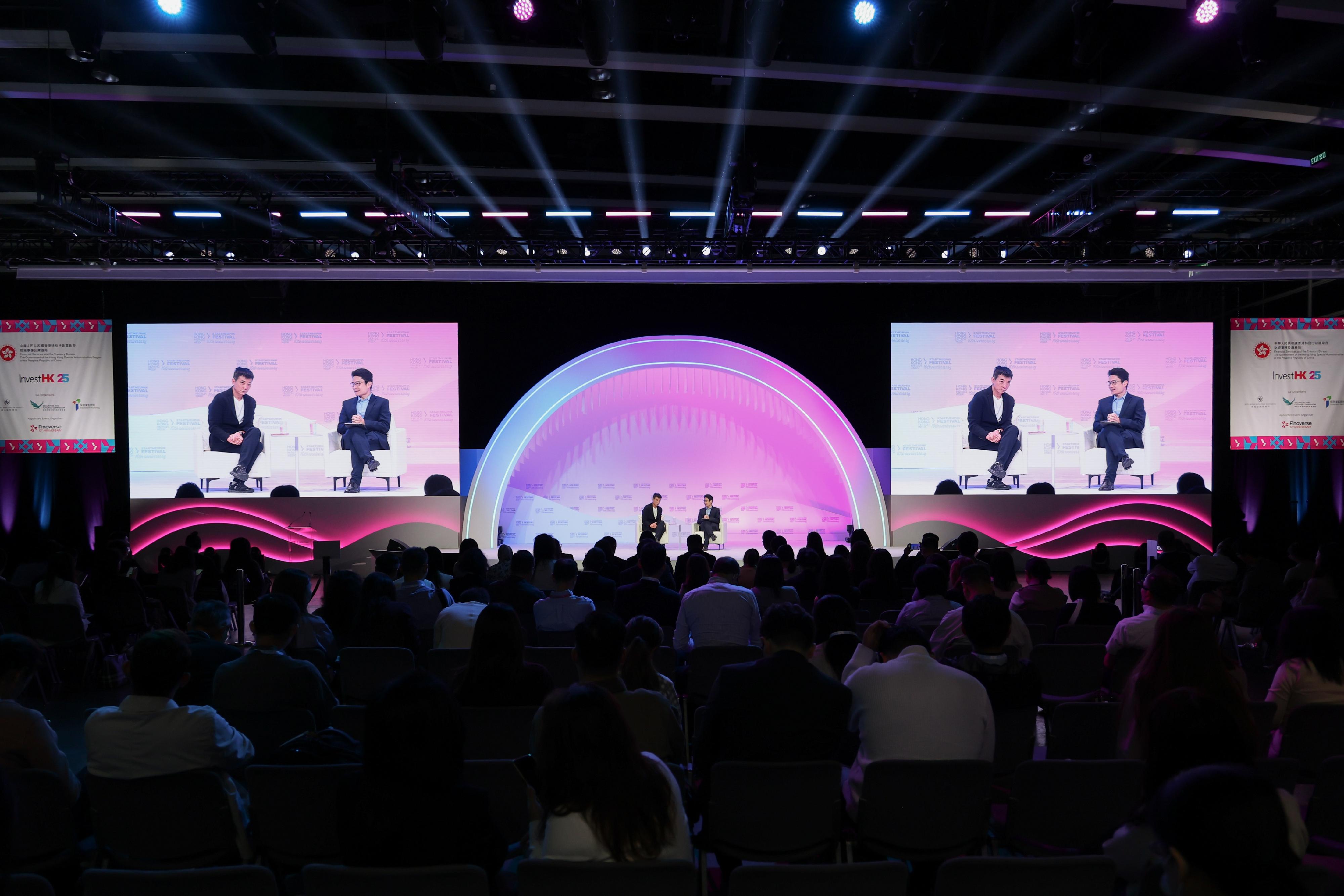 財經事務及庫務局副局長陳浩濂於主論壇與美圖公司前主席、天使投資人蔡文勝展開深度對話。陳浩濂講述香港在數字資產領域的最新發展。陳浩濂表示:「特區政府正推動數字資產以可持續和負責任的方式發展。作為亞洲領先的國際金融中心,二○二五年六月我們發表《香港數字資產發展政策宣言2.0》,重申政府致力將香港打造成數字資產領域中的全球創新中心。」