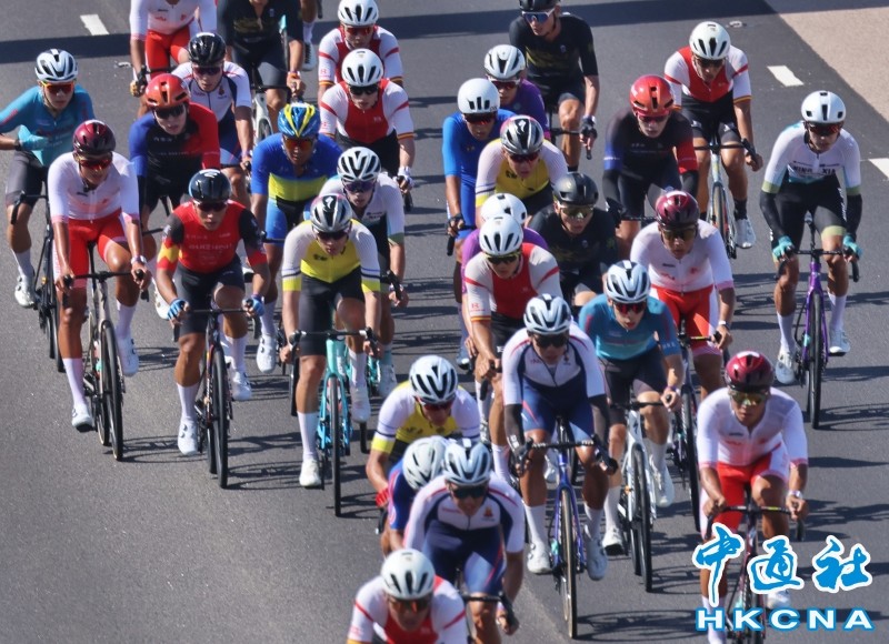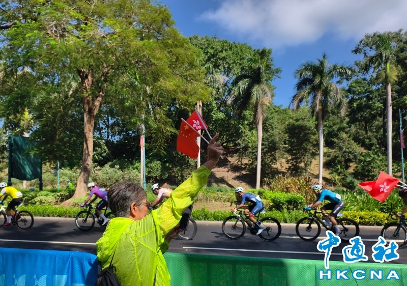 中國第15屆全國運動會男子公路自行車個人賽決賽8日舉行,車隊當天上午11時許路過香港迪士尼樂園附近的公眾觀賽區,市民手持國旗和香港特區區旗為運動員打氣,見證全運會歷史上的首個跨境賽事。