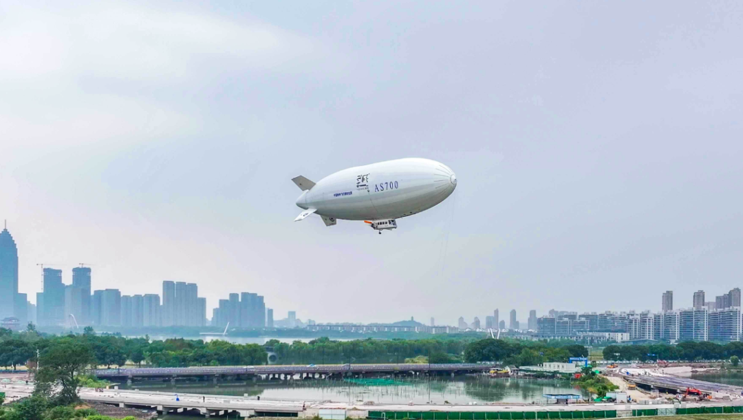 AS700載人飛艇由中國航空工業集團特種飛行器研究所自主研製,是我國首個按適航規範研製、擁有完全自主知識產權的載人飛艇。它總長50米,最大航程700千米,可搭載10人。該飛艇憑藉“低空慢飛、安全可靠”的特點,可在100—300米的最佳觀景高度,讓遊客俯瞰祖國河山大好風光。