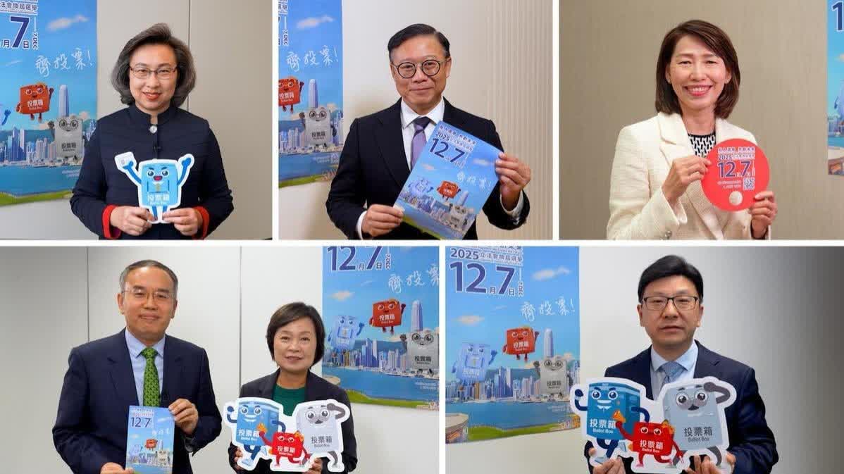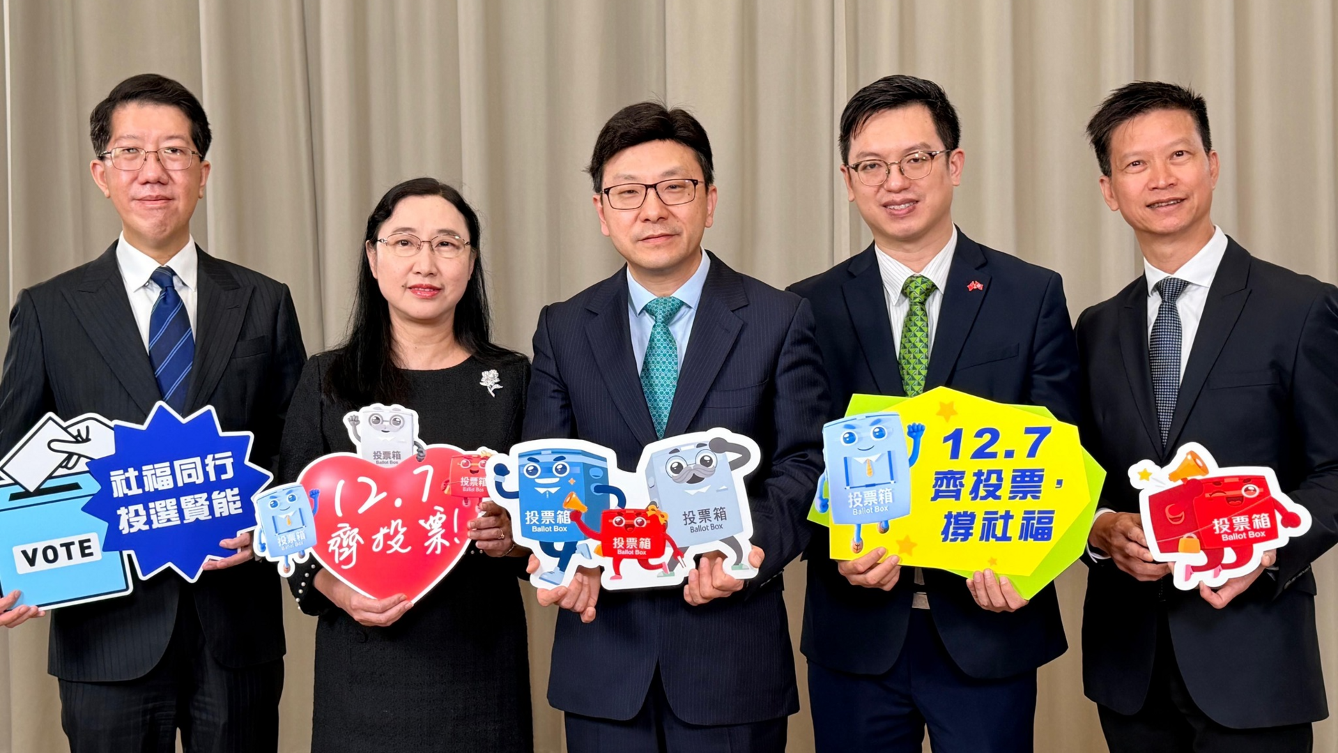 2025年立法會換屆選舉投票將於12月7日舉行,勞工及福利局局長孫玉菡率領勞福局常秘劉焱、副局何啟明、社會福利署署長杜永恒及勞工處處長許澤森,一同以捲紙藝術製作選舉吉祥物——“票箱寶寶”,呼籲市民履行公民責任,積極投票,共建美好香港。