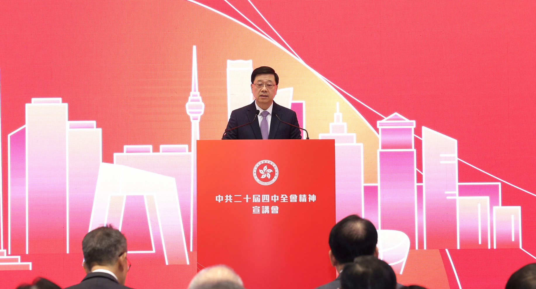 特區政府昨日在政府總部舉辦首場中共二十屆四中全會精神宣講會。行政長官李家超在會後總結三點體會,強調必須深入理解和領會四中全會精神、守正創新推進工作、融匯貫通於日常事務。這充分體現了特區政府對四中全會精神和“十五五”規劃建議的高度重視,積極主動帶領香港各界認真學習與貫徹四中全會精神,更好把握“十五五”規劃帶來的巨大新機遇,推動香港實現發展新飛躍、再創新輝煌。