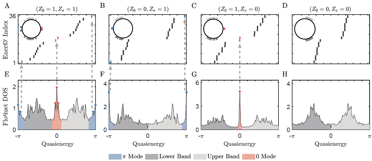 研究團隊基於“祖沖之二號”超導量子處理器的可編程能力,首次在實驗中實現了平衡與非平衡二階拓撲相的量子模擬與探測。在理論上,研究團隊提出了針對高階拓撲相的靜態與Floquet量子線路設計方案,解決了在二維超導量子比特陣列中構建高階平衡與非平衡拓撲哈密頓量的關鍵難題,並開發了通用的動力學拓撲測量框架。在實驗上,研究人員建立了系統化的處理器優化方案,通過精密標定,實現了量子比特頻率與耦合強度的動態調控,在6×6量子比特陣列上,成功執行了多達50個Floquet周期的演化操作,首次成功實現了四種不同類型的非平衡二階拓撲相,並系統探索了該拓撲相的能譜、動力學行為、拓撲不變量等特徵。