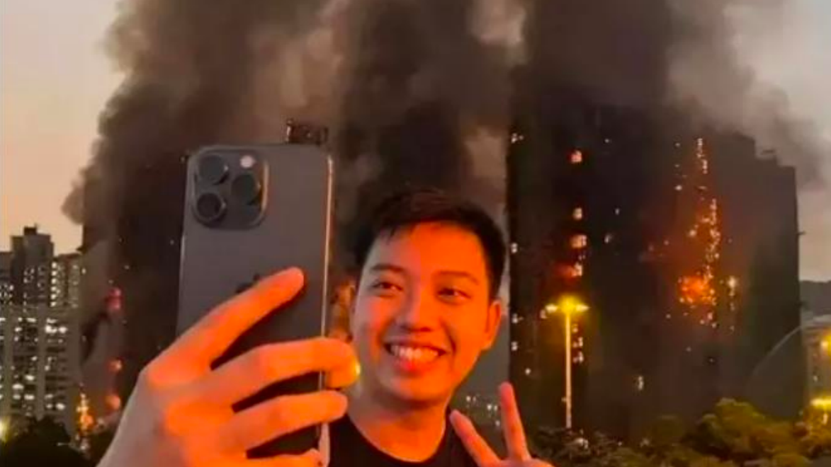 此外,網上圖片亦顯示陳曾於早前在大埔宏福苑火災現場自拍,大笑兼舉起勝利手勢,明顯是利用災難傷亡來博取眼球的卑劣無恥行為,反映陳喪心病狂,嚴重缺乏同理心。