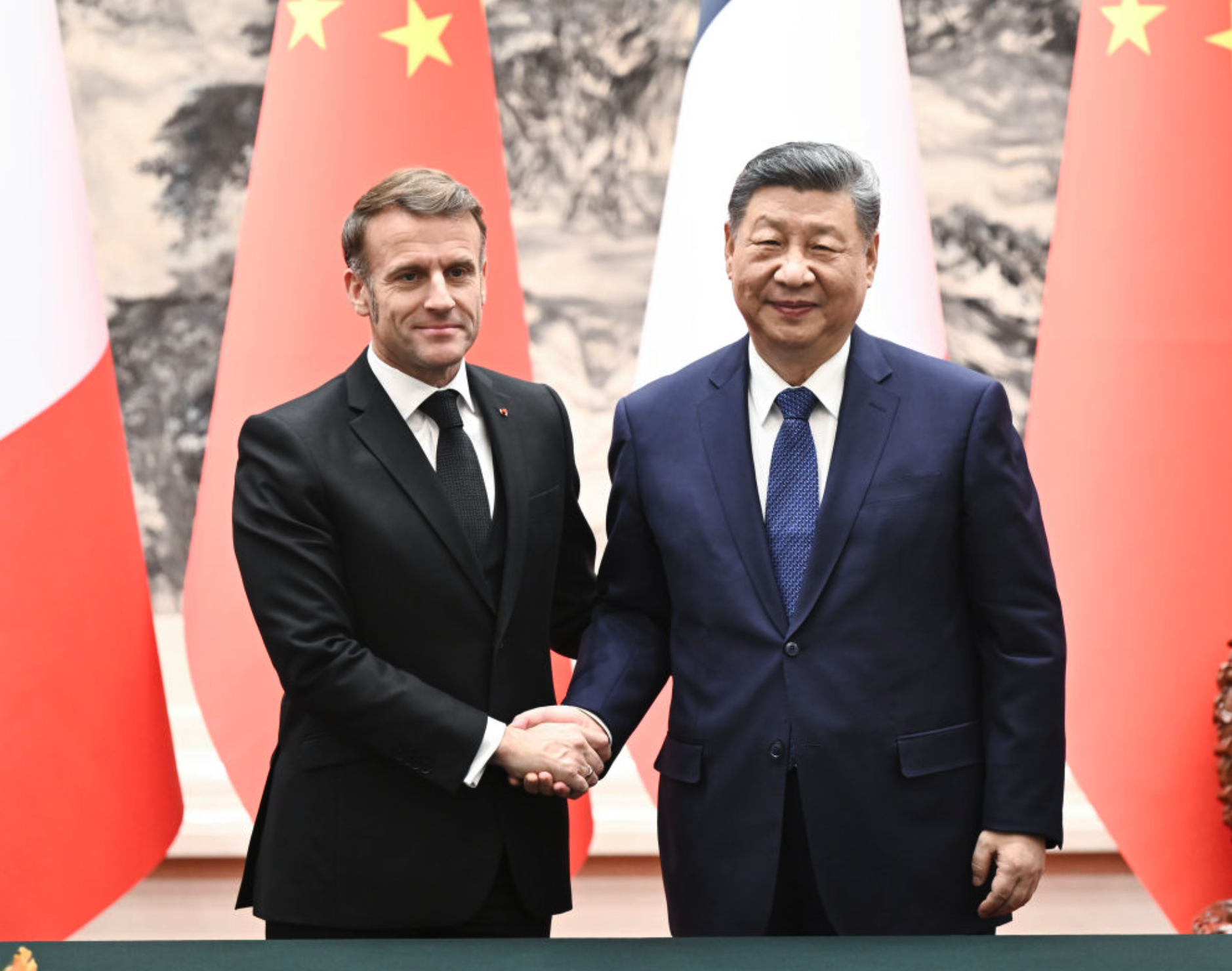馬克龍表示,法中保持密切高層交往,始終相互信任、相互尊重。法方重視對華關係,堅定奉行一個中國政策,願持續深化法中全面戰略伙伴關係。法方樂見中國經濟蓬勃發展,堅持開放合作,為世界帶來更多機遇,願同中方促進相互投資,加強經貿、可再生能源等領域合作,促進友好文化交流。法方歡迎中國企業更多赴法投資,願提供公平、非歧視營商環境。法方致力於推動歐中關係健康穩定發展,認為歐中應堅持對話合作,歐中應實現戰略自主。面對世界地緣形勢不穩、多邊秩序受到衝擊,法中合作更顯重要,不可或缺。法方完全贊同習近平主席有關改革完善全球治理、推動全球經濟更加平衡的意見,願同中方加強協調,共擔大國責任、堅持多邊主義,加強在應對氣候變化、保護生物多樣性、人工智能治理等領域合作,為促進世界和平與繁榮作出貢獻。