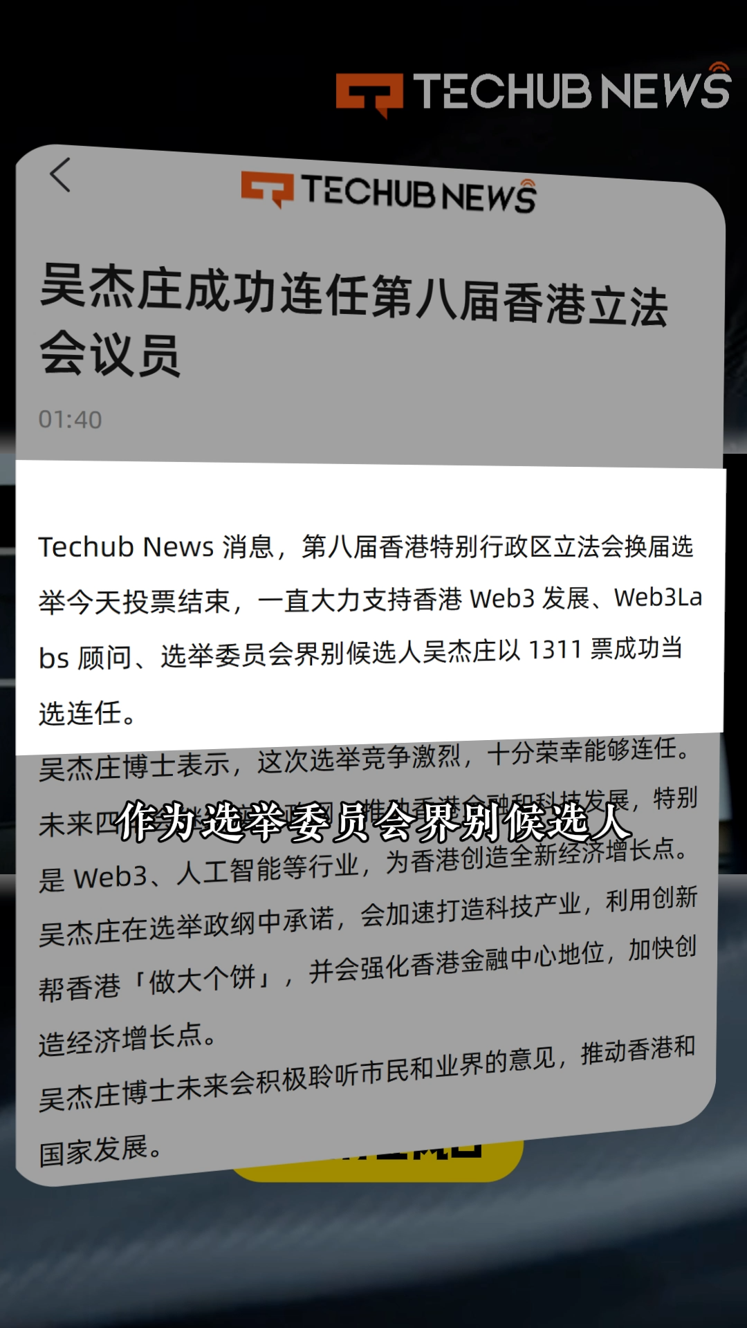 吳傑莊成功連任第八屆香港立法會議員