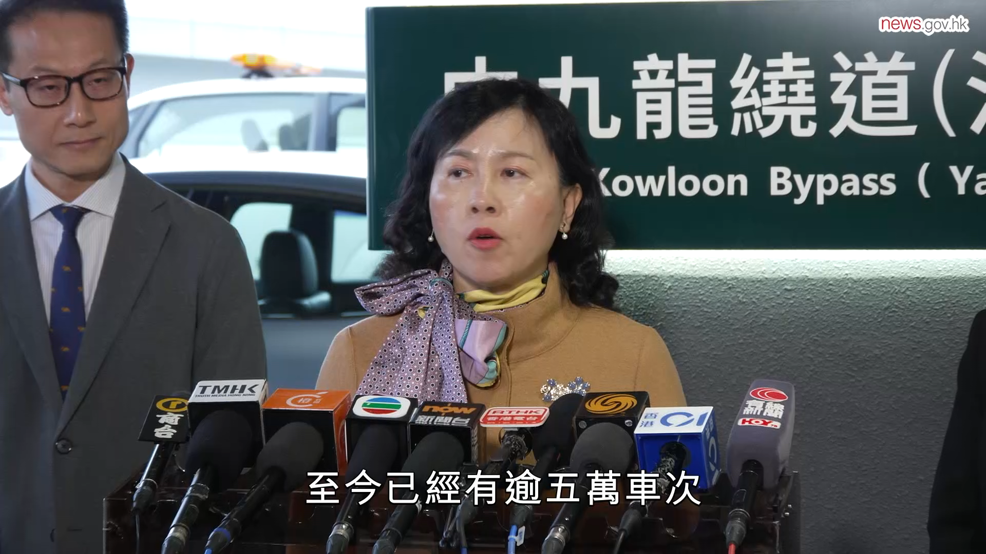 運輸及物流局局長陳美寶今早視察中九龍繞道(油麻地段)通車後首個工作天的交通情況。她表示,交通情況大致暢順,符合預期。