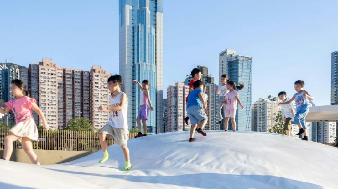 其中,公園最大焦點無疑是全港公共空間首個雲朵形狀的戶外充氣遊樂設施。有別於傳統硬體遊樂場,這片“雲海”以柔軟、彈性材質打造,造型夢幻,讓兒童攀爬、跳躍,發展身體協調能力。其防滑表面與內置緩衝系統,能減低意外受傷風險,家長可更安心。