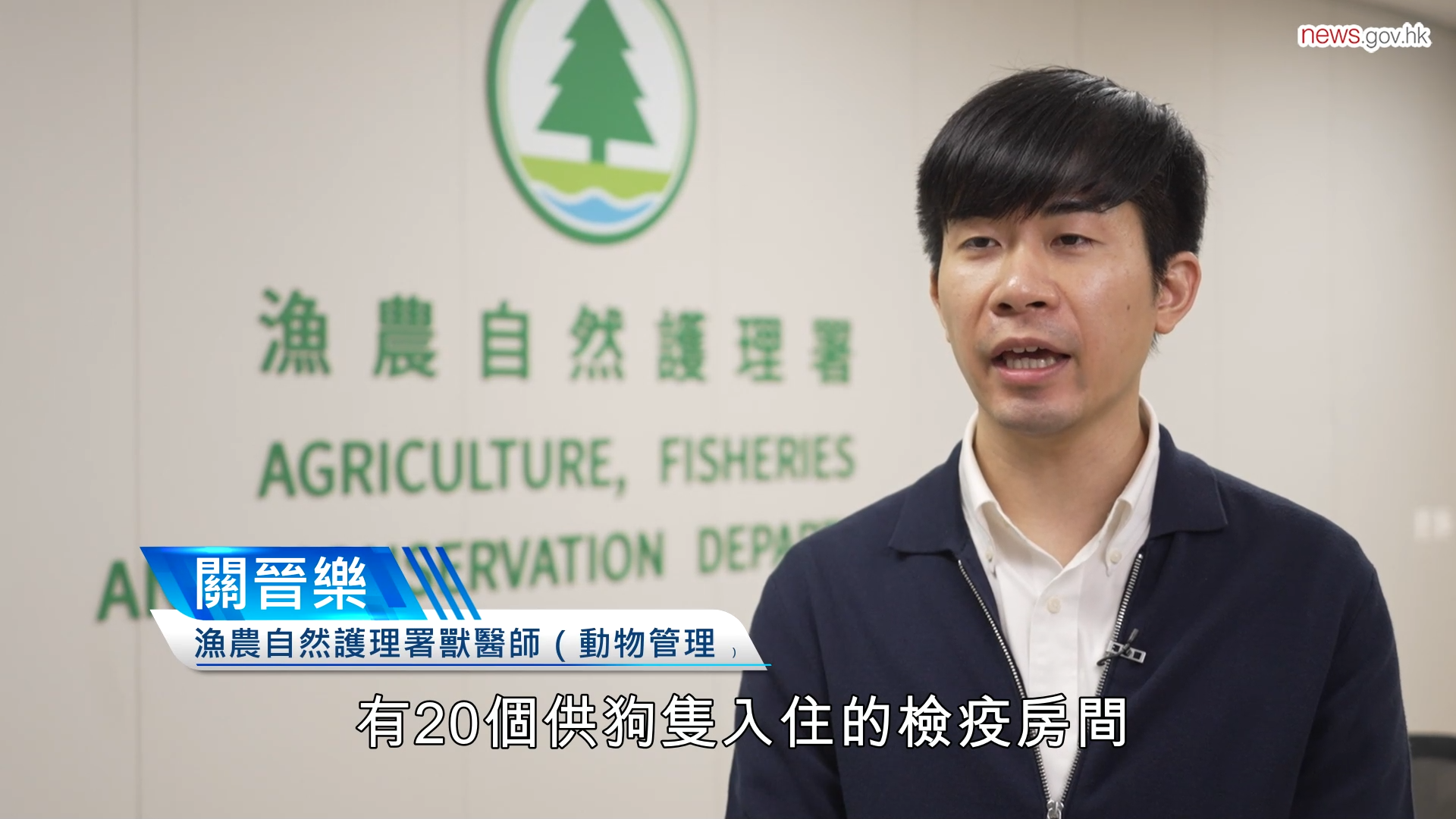 漁農自然護理署轄下九龍動物管理中心去年搬遷至位於啟德的動物管理及動物福利綜合大樓。大樓提供更多動物檢疫設施,加上部門優化內地進口貓狗檢疫安排等措施,貓狗輪候檢疫設施的時間已大幅減少。