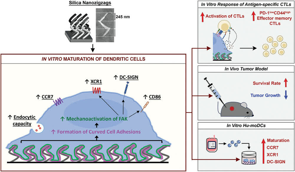 免疫治療近年成為癌症治療新方向,較傳統化療相對溫和、副作用亦較輕,但臨床常用的樹突細胞免疫療法一直面對療效參差、細胞培育流程繁複及成本高昂等限制。香港教育大學(教大)科研團隊近日成功研發新型二氧化矽納米基質生物材料Nanozigzags(NZs),可有效縮短樹突細胞培育時間、降低成本,並把療效提升近70%,有望為樹突細胞疫苗提供更安全、可標準化及更易普及的路徑,加速臨床轉化。