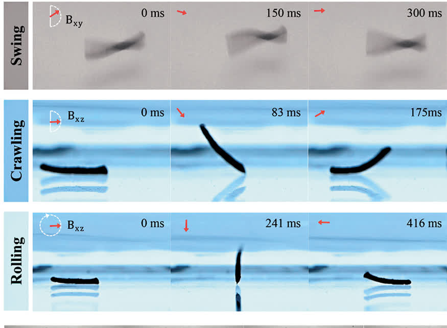 此外,血液水凝膠微型機械人嵌入了磁性納米顆粒,意味着可以透過X光成像技術觀察其活動,並利用外部磁場編程實現實時控制。