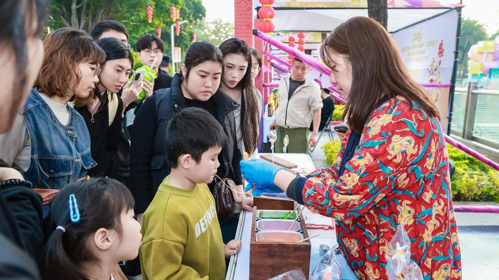 花城廣場上,英歌舞贏得觀眾陣陣喝彩,非遺市集引人駐足。本次活動設置“尋味中國年”“華衣煥新顏”“國風潮好物”展區,來自15個省區市及香港、澳門的130餘個非遺代表性項目在此展銷。