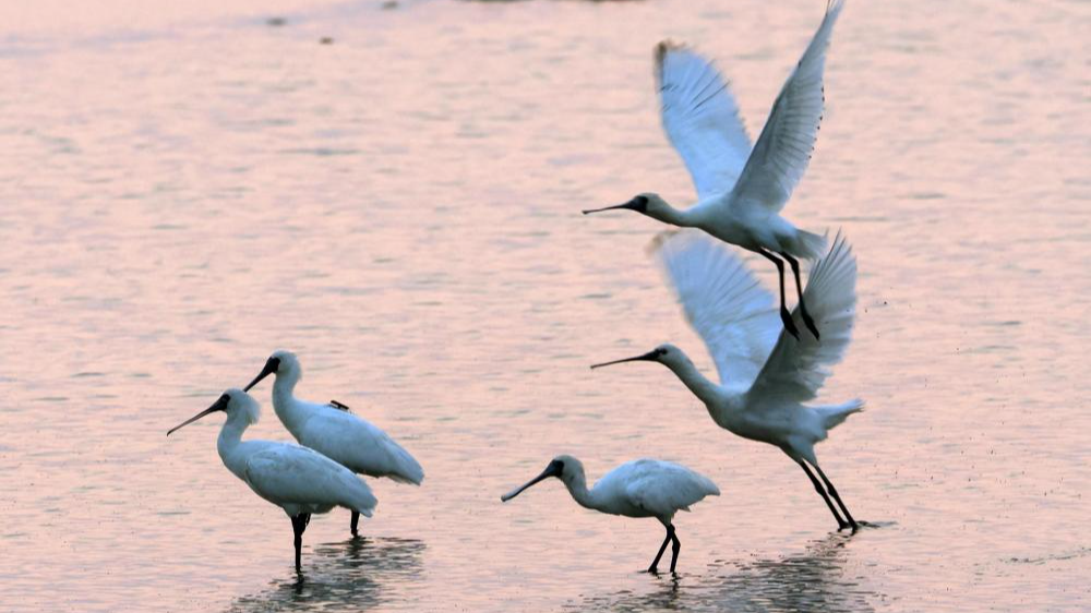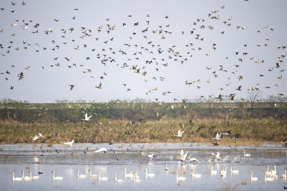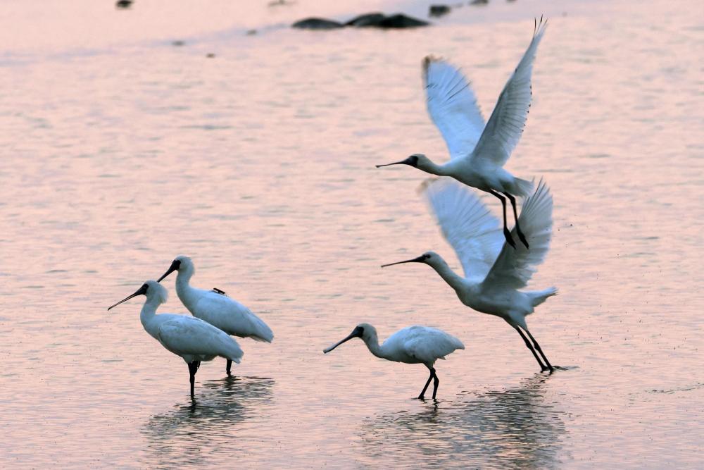 東方白鸛黑臉琵鷺卷羽鵜鶘等珍稀鳥類