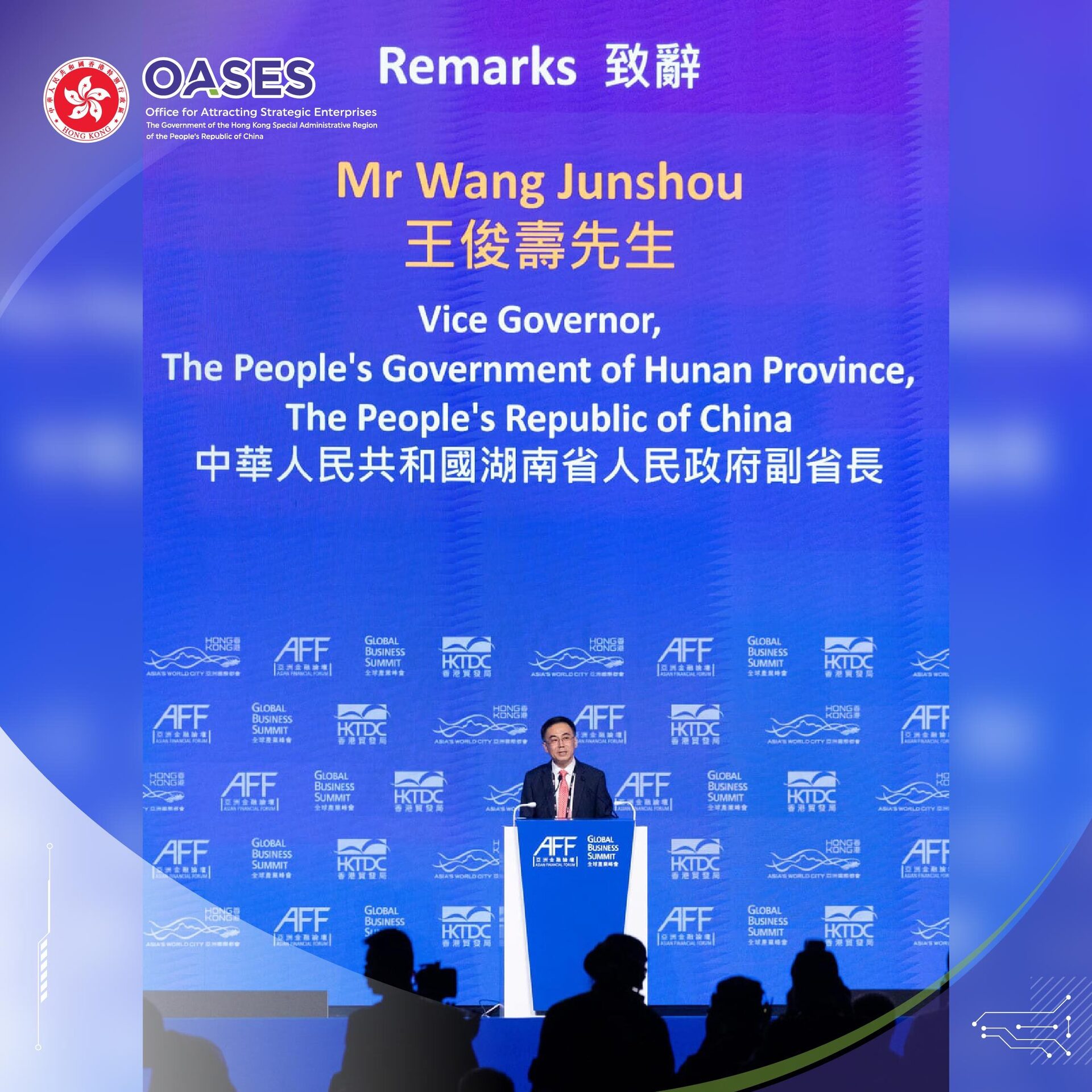 財政司司長陳茂波在開幕致詞中強調,貿易、金融、創新與科技將成為香港經濟發展的三大支柱。他指出,政府正加速發展北部都會區,並將提供批地、補地價優惠及稅務減免等度身訂做的激勵方案,以吸引更多重點企業落戶。
