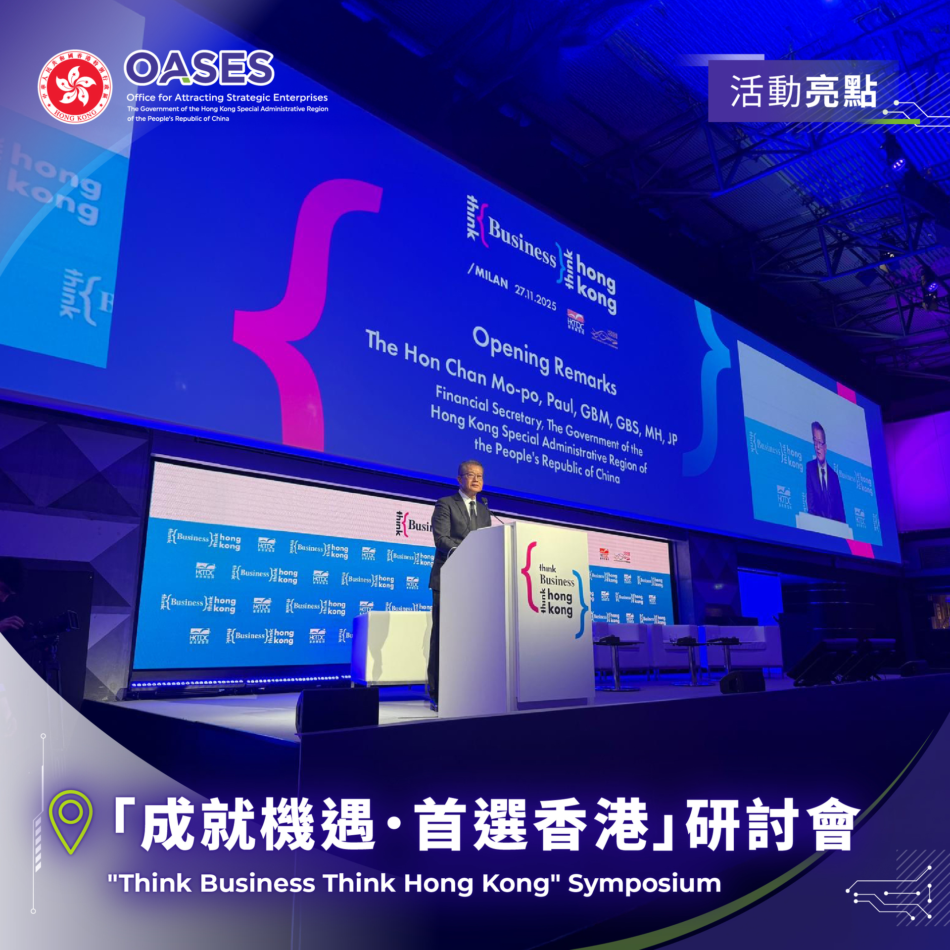 這次行程的另一個重點,是出席香港貿易發展局在米蘭舉辦的年度旗艦推廣活動-「成就機會.首選香港」(Think Business, Think Hong Kong)。
