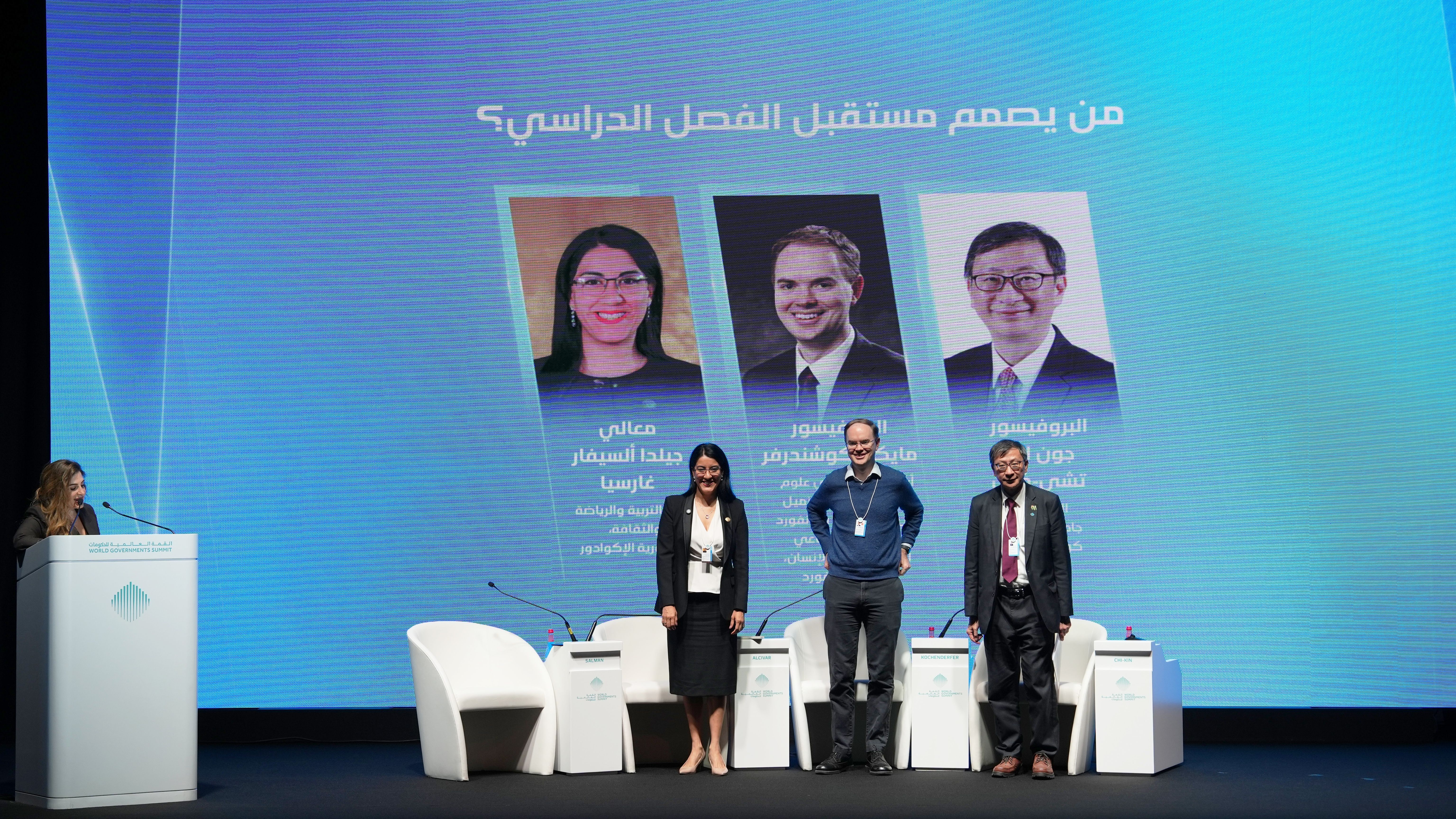 隨後,李子建教授出席題為「誰塑造未來課堂?」的「教育未來論壇」,與厄瓜多爾教育、體育與文化部長Gilda Alcivar閣下,及史丹福大學以人為本人工智能研究所資深研究員 Mykel Kochenderfer 教授同台對談,話題聚焦人工智能在教育中的個人化學習、創意培養與倫理責任。