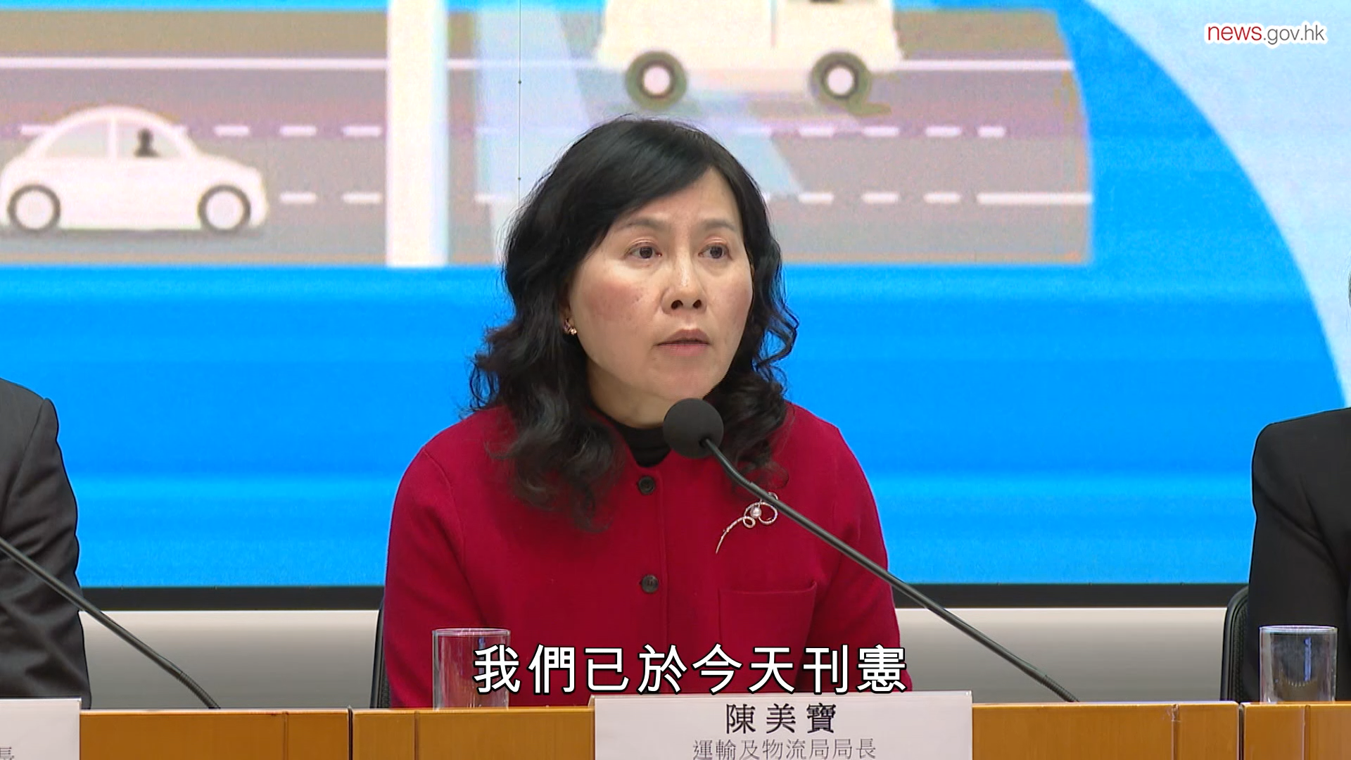 運輸及物流局局長陳美寶表示,政府今日刊憲刪除《道路交通(安全裝備)規例》第8D條。即日起,乘客乘坐專營巴士或非專營巴士時必須佩戴安全帶的法定要求取消。政府將展開公眾諮詢,再就推行方向和細節提出建議。