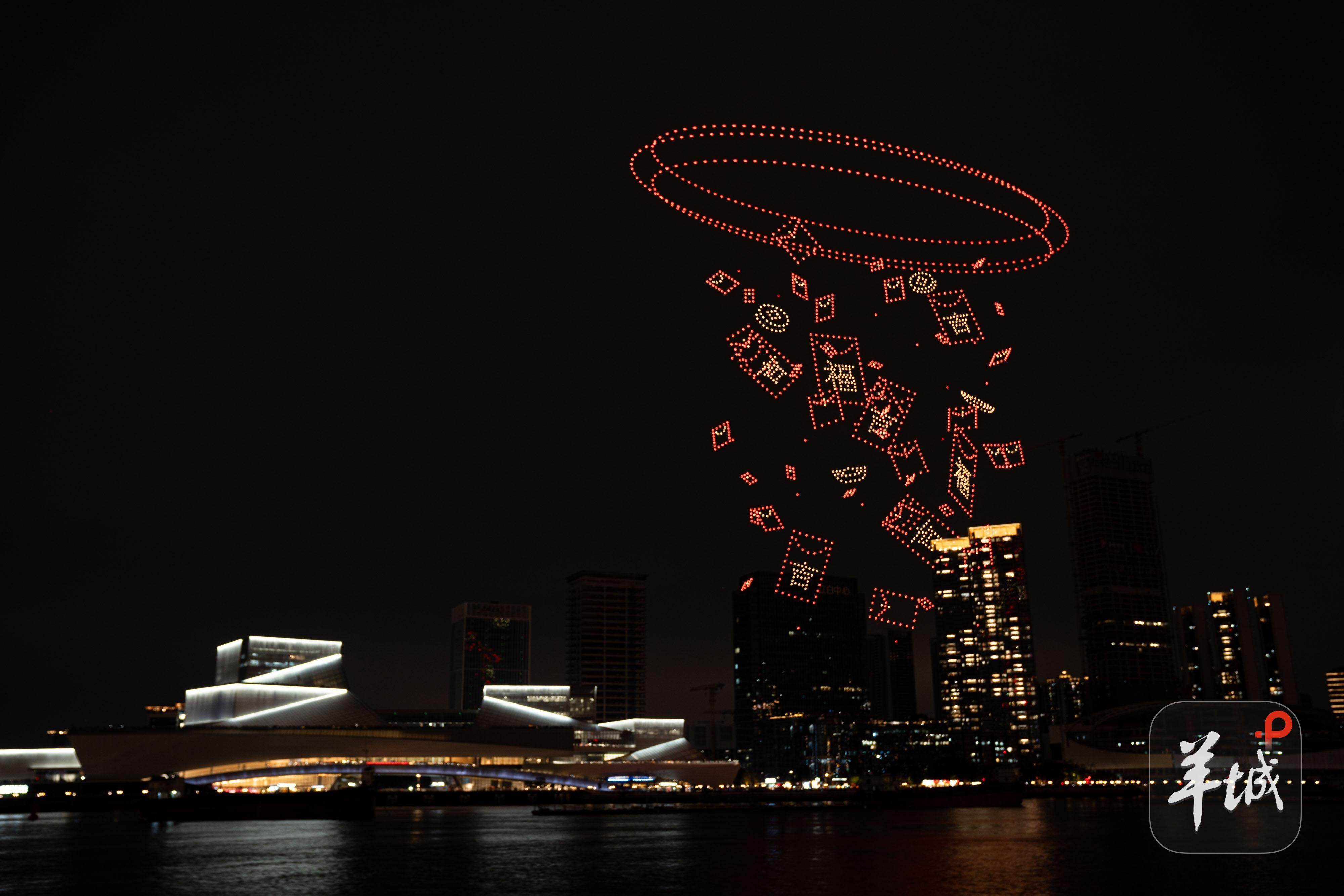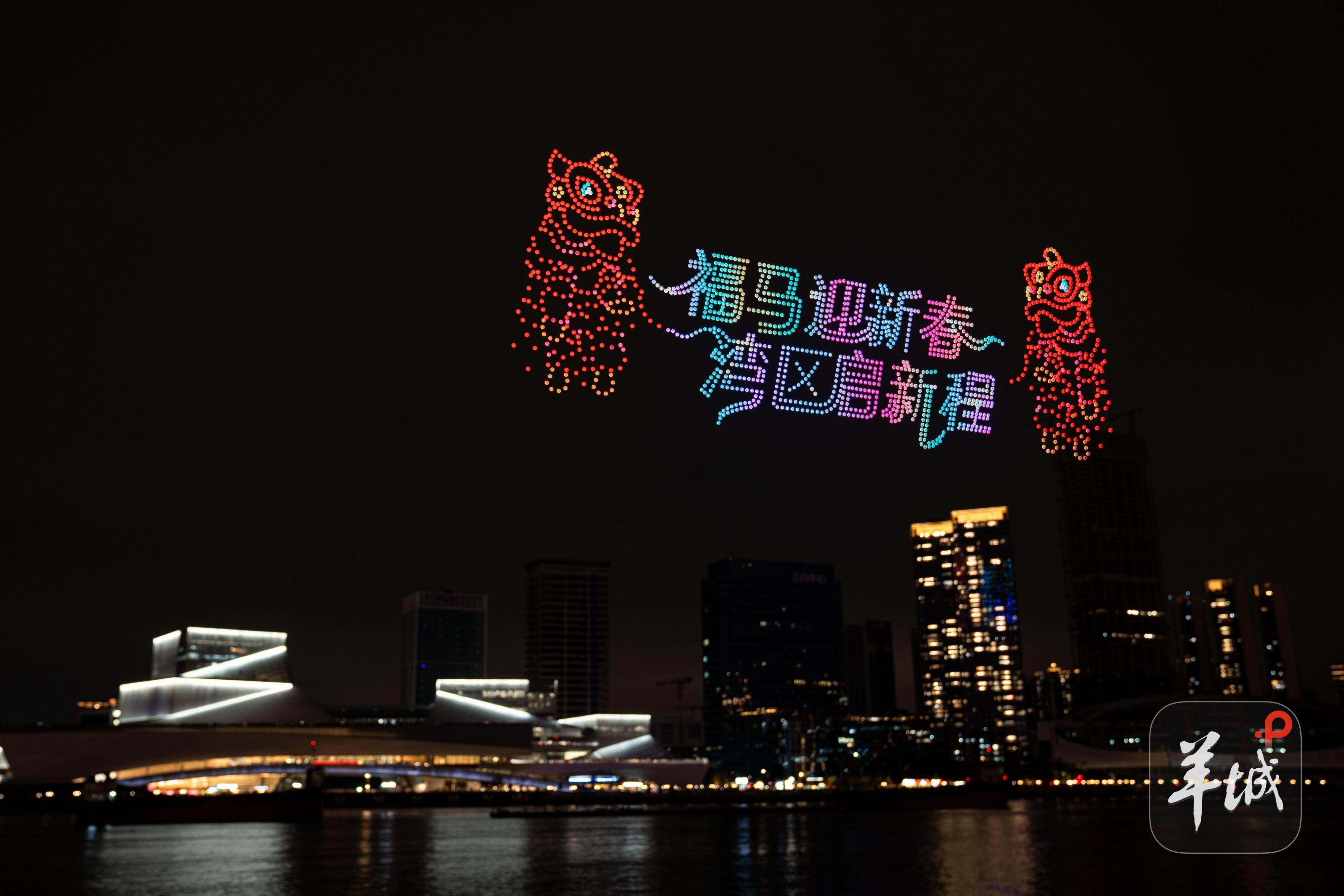 20時,懸浮於空中的2026架無人機點亮夜空,正式拉開匯演序幕。無人機編隊首先演繹了嶺南神獸“鰲魚”。隨後,“2026新春好”的溫暖祝福浮現。一朵巨大的木棉花凌空盛放,在英雄花的華彩之下,“廣州歡迎您”五個大字在如意祥雲的簇擁中展現,向世界發出廣州的誠摯邀請。“紅包雨”傾灑而下,光影流轉之間,一對醒獅躍然天際。篇章尾聲,市民熟悉的十五運會和殘特奧會吉祥物“喜洋洋”“樂融融”閃亮登場,以童趣的方式“點燃”爆竹。