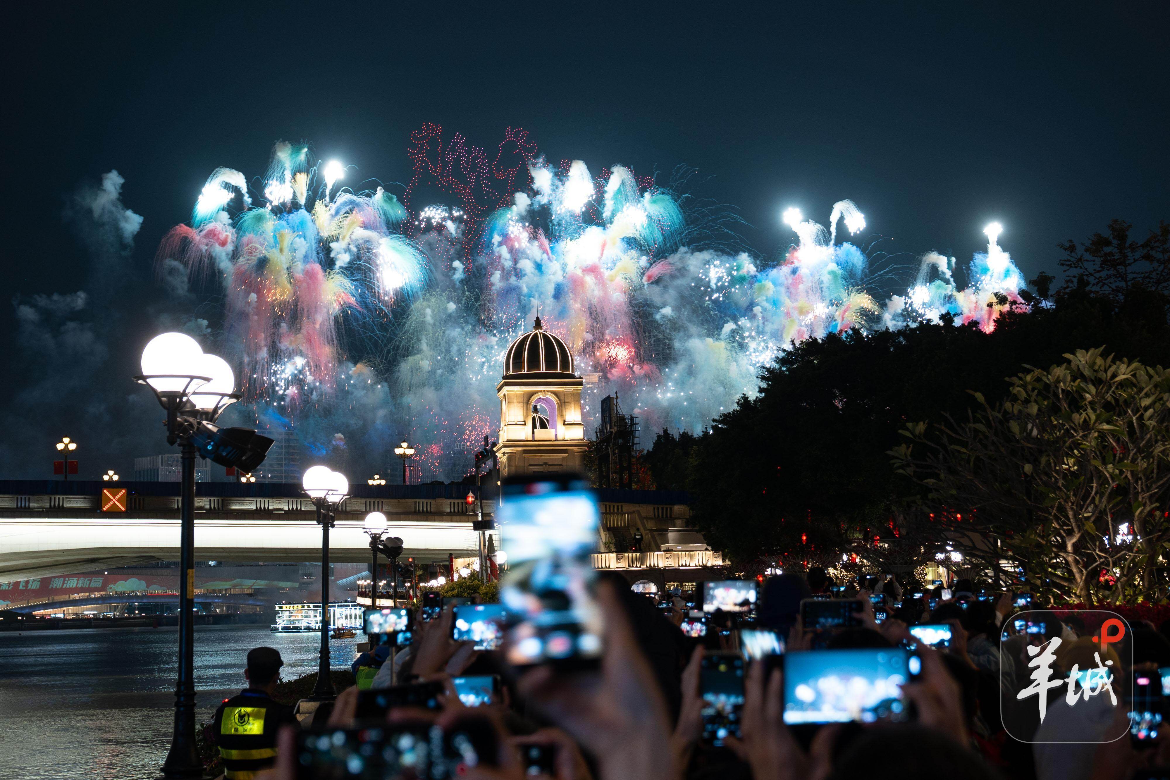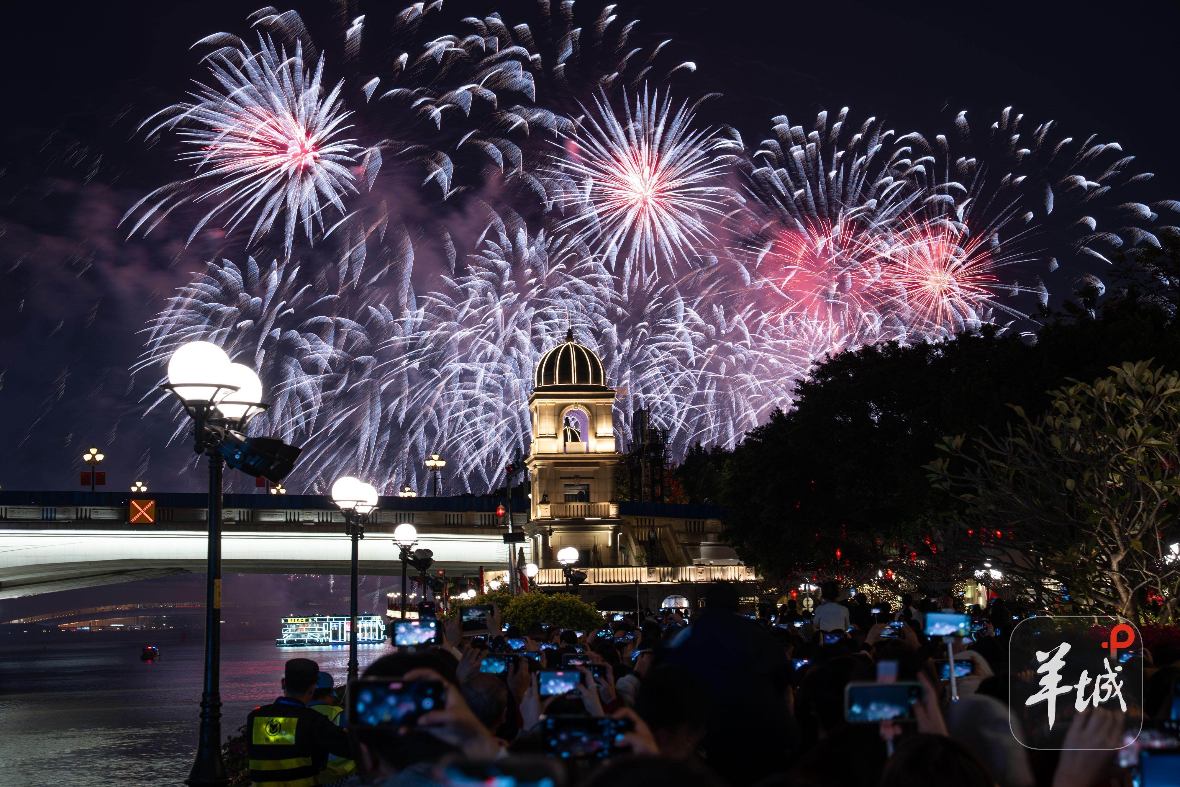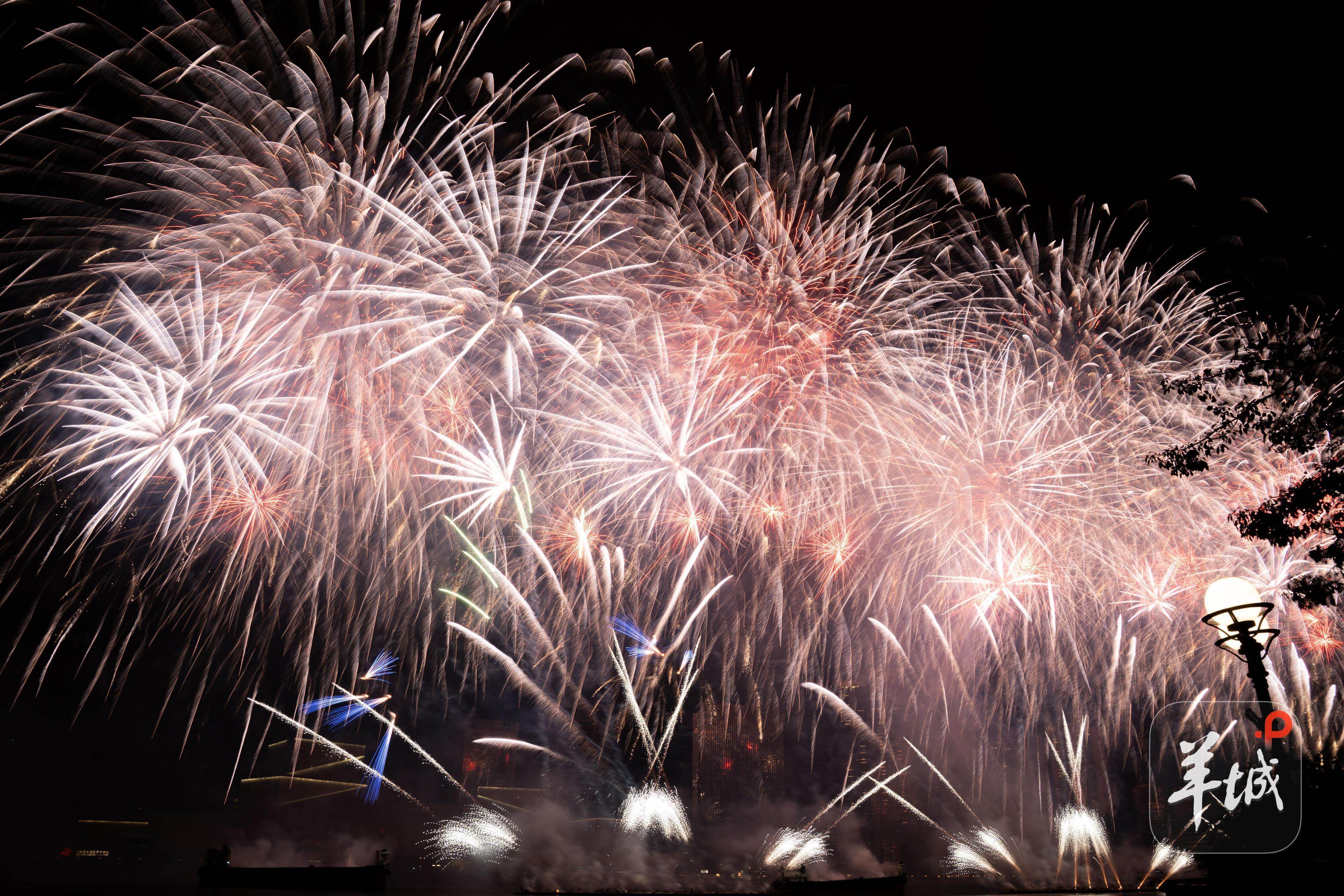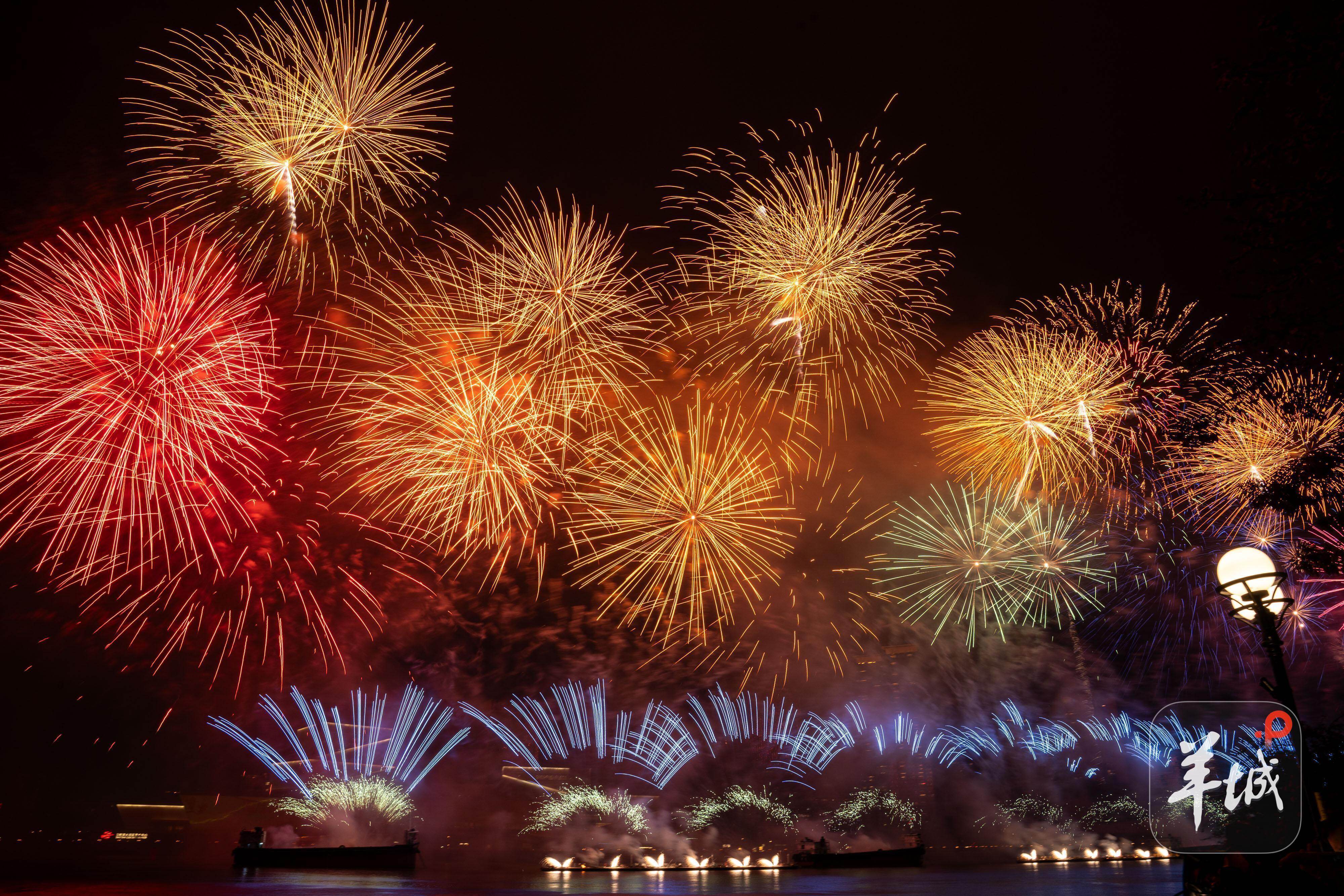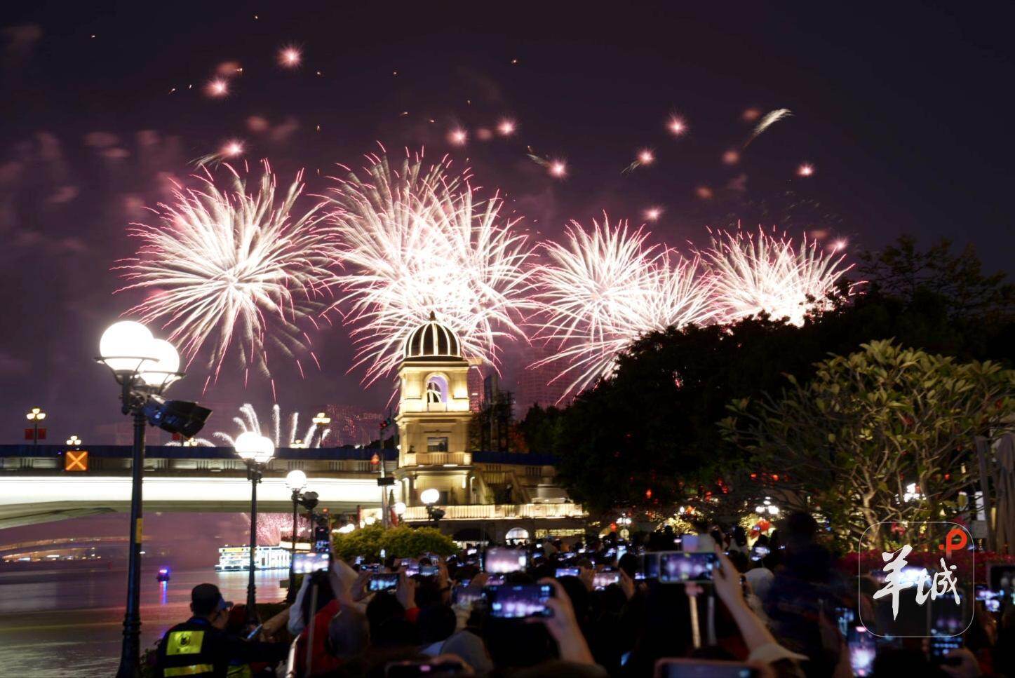 本次煙花匯演通過線上直播和線下觀演融合的方式,全面立體呈現視覺盛宴。線上,依託超高清轉播系統,進行電視端、網絡端、移動端等全媒體直播;線下,荔灣區、海珠區、越秀區的17個觀演區,開放了約18萬個名額給市民遊客,預約抽籤觀賞。