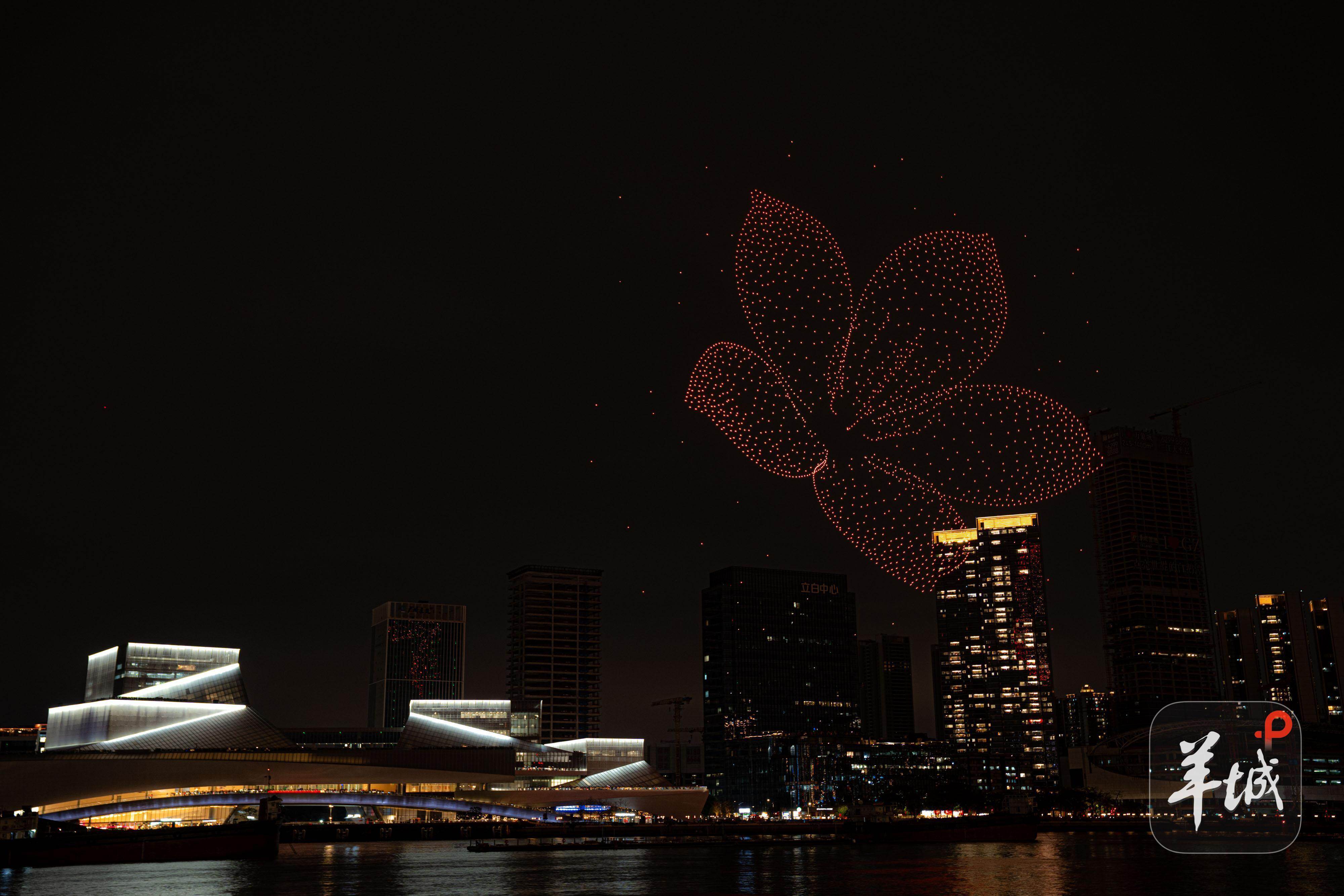 煙花匯演開篇的無人機表演,呈現出“木棉花”圖案。