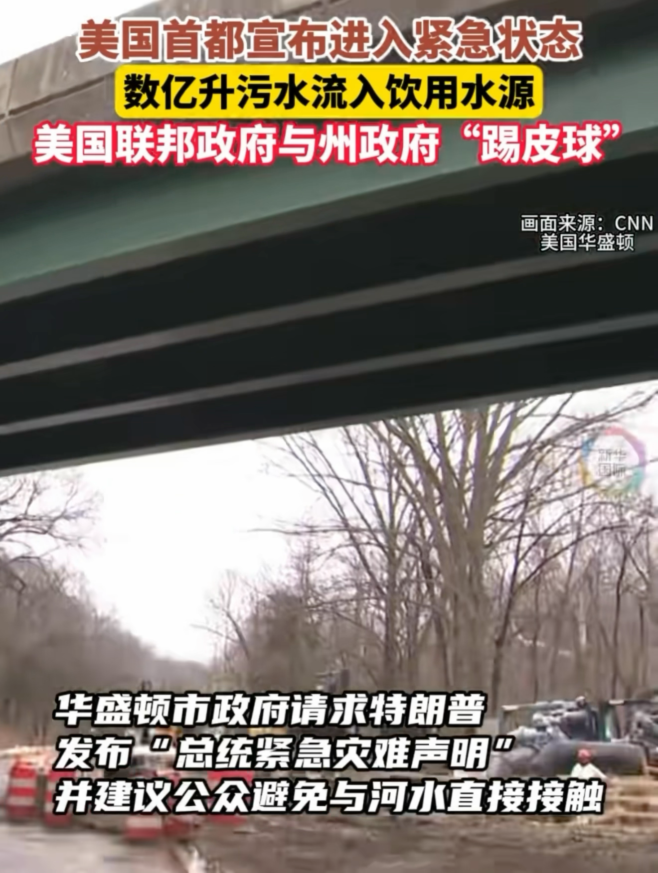 美國首都華盛頓市長辦公室18日發表聲明說,華盛頓市長鮑澤當天宣布該市進入緊急狀態,並請求總統特朗普提供聯邦資源,以應對污水泄漏至波托馬克河事故。