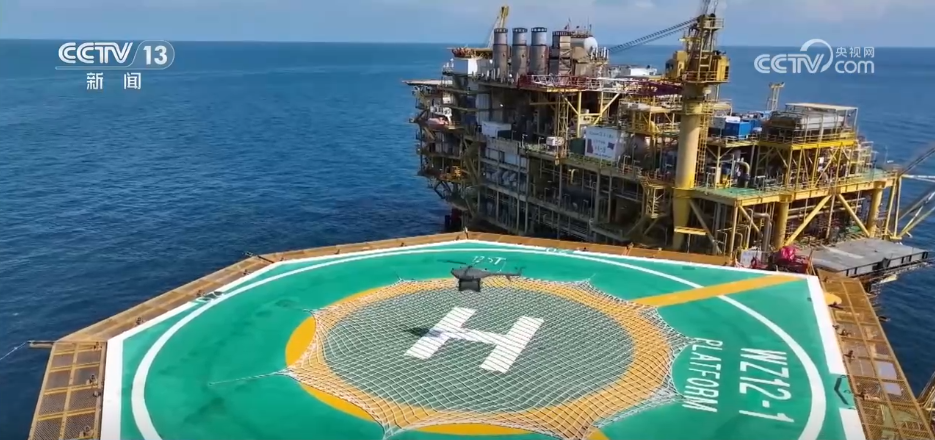 記者來到北部灣海域,距離陸地約50海里的潿洲12-1油田中心平台,大家看到的這台搭載高清攝像頭和紅外熱成像儀的工業級無人機,能在7級風以下實現全天候智能巡檢,1小時就能完成過去拖輪一整天的巡檢工作量。