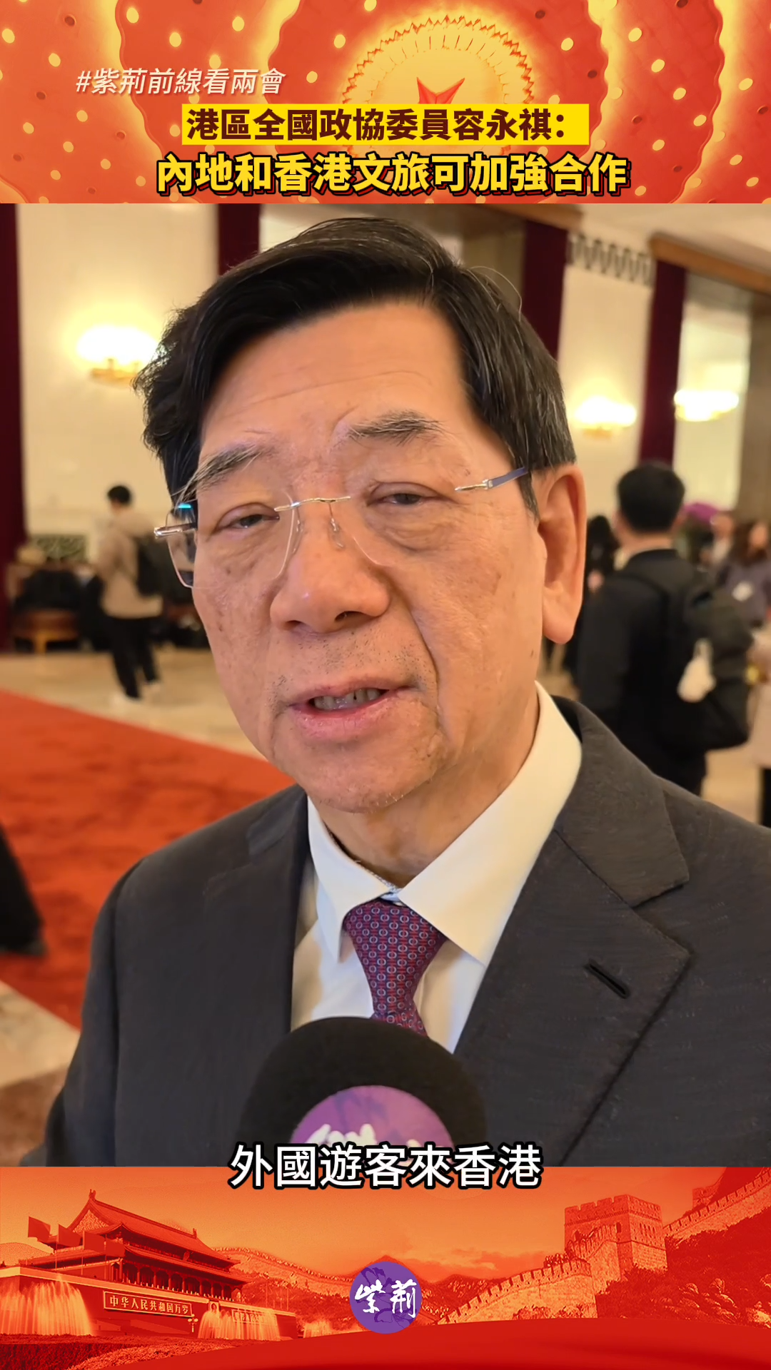 港區全國政協委員、全國政協經濟委員會副主任容永祺接受紫荊雜誌記者採訪時表示,內地和香港文旅可加強合作:外國遊客來香港玩的同時,也可去往大灣區不同城市遊玩;內地遊客來香港時,可以去更深入地了解香港本地文化。