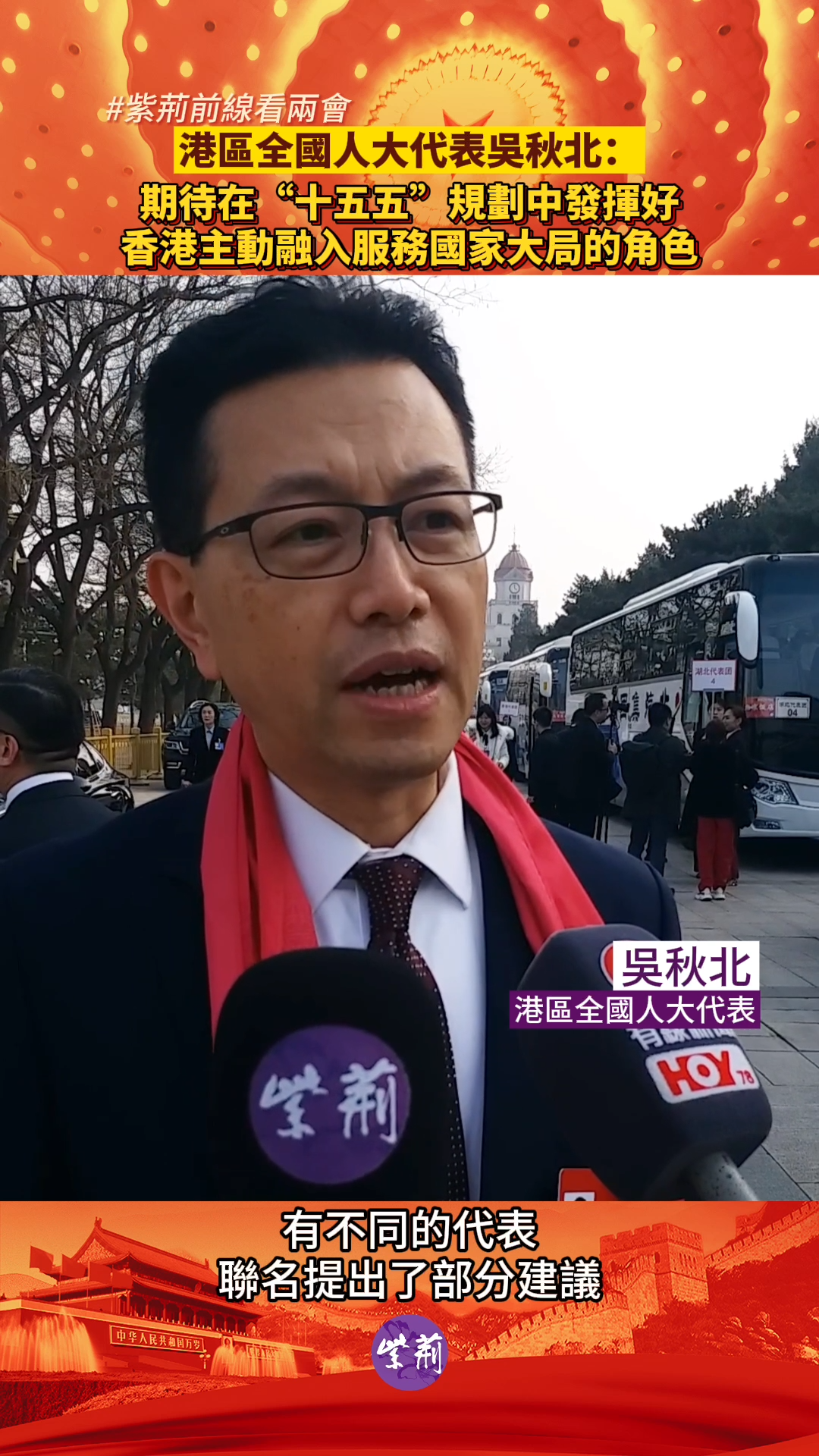 港區全國人大代表吳秋北接受紫荊雜誌採訪時表示,期待在“十五五”規劃中,發揮好香港主動融入和服務國家大局的角色,會努力做好工作,帶動香港自身發展。