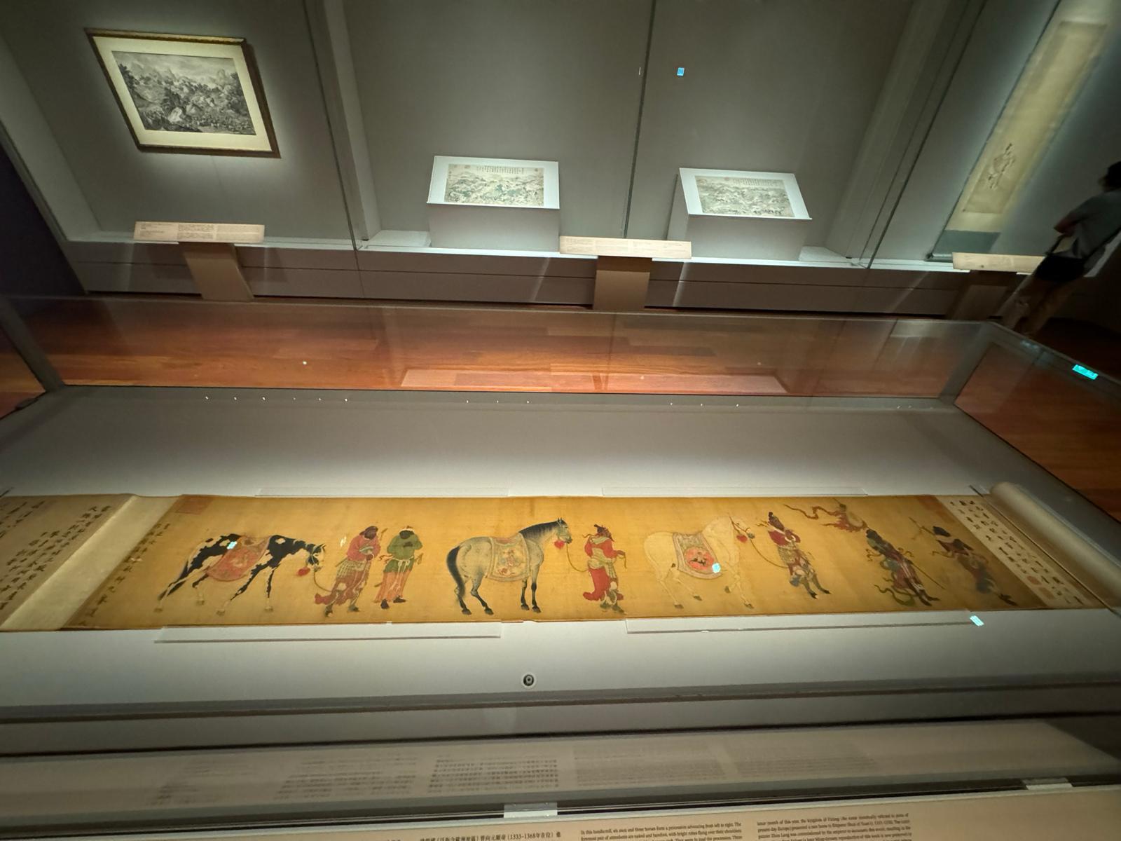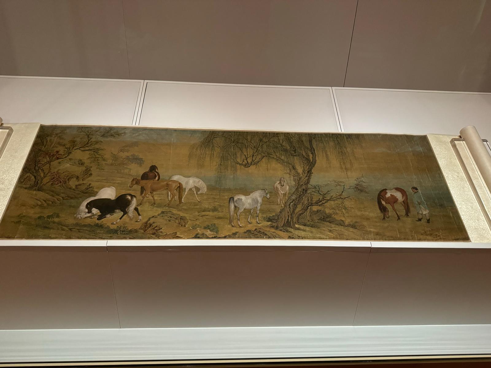 展覽設四大單元,探析和展示中國馬畫藝術的成就。第一單元“宮廷:行遊與騎獵”展示宮廷畫家的相關畫作,包括王公貴族的行樂及歷史典故等主題;第二單元“邊塞:鐵馬與烽塵”聚焦以邊疆地區為背景的作品,包括職貢、和親等主題,以及清代(1644-1911年)宮廷畫家所繪戰圖;第三單元“山澤:文思伴馬蹄”,展示文人和駿馬相伴行旅的山水主題繪畫,以及明代(1368-1644年)與清代畫家自傳統底蘊煥發新意的人馬畫;第四單元“中西:駿馬騰古今”則呈現晚清至近現代受歐洲等地畫風啟發的馬畫新貌。