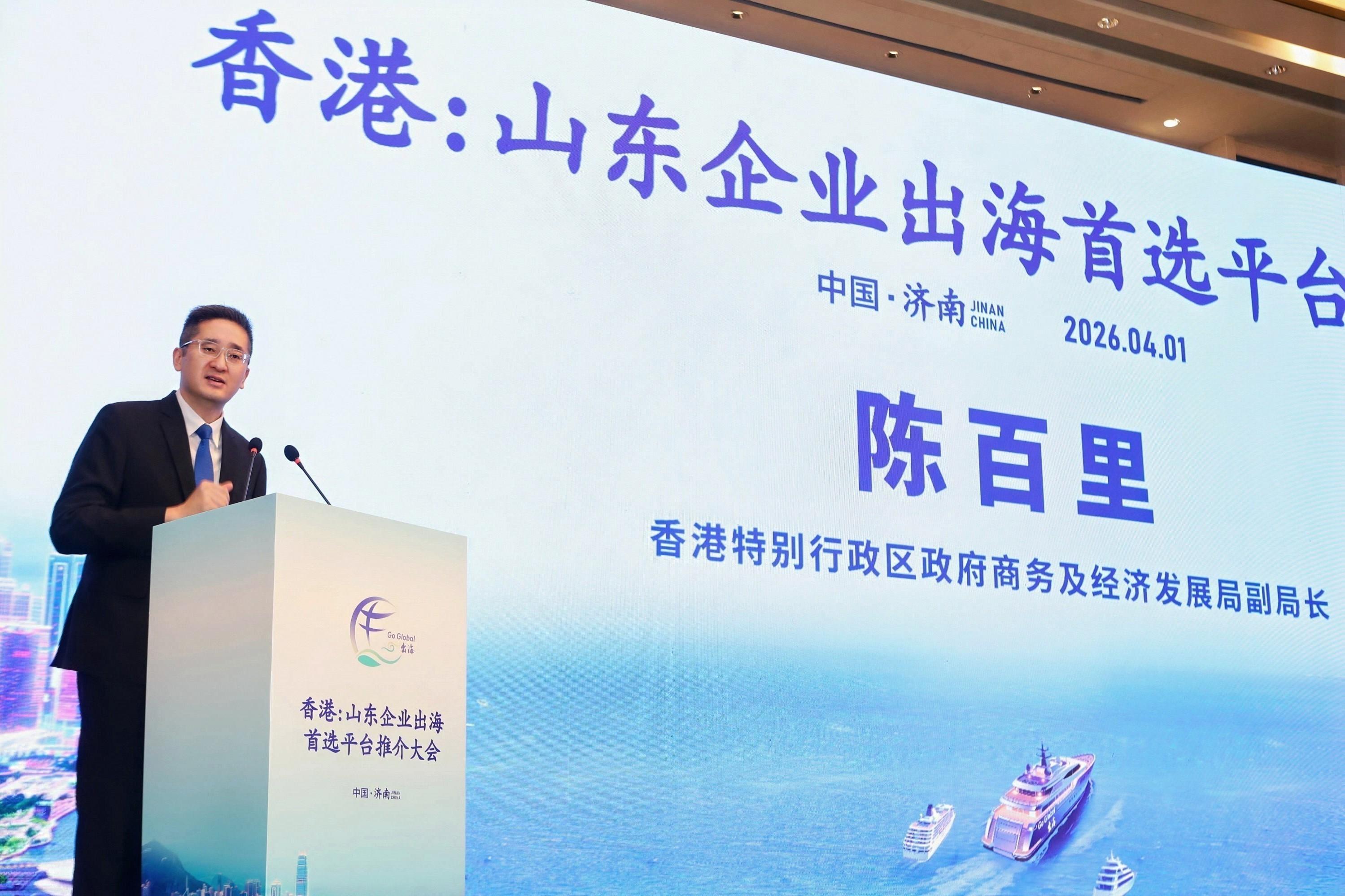 投資推廣署(投資署)、香港特別行政區(特區)政府駐上海經濟貿易辦事處(駐滬辦)和香港貿易發展局(貿發局),與山東省委港澳工作辦公室和山東省商務廳,今日(四月一日)在山東省濟南市合辦「香港:山東企業出海首選平台」推介大會。