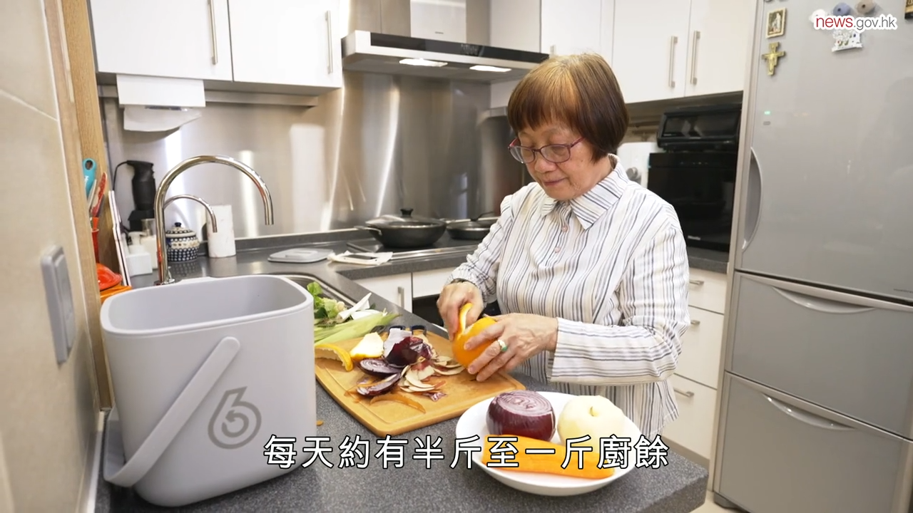 蘇太居住的屋苑參與了試驗計劃,一共擺放八個智能廚餘回收桶。她稱讚智能廚餘回收桶可收集骨頭、榴槤殼等較堅硬的廚餘。