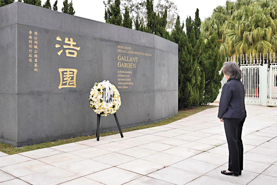 楊何蓓茵昨日在社交平台發帖文表示,早前她謹代表特區政府到浩園悼念克盡己職、因公殉職的同事,表達哀思。其間,她到消防隊目(追授)何偉豪的墓前拜祭,致以最崇高的敬意,“何偉豪於撲救大埔宏福苑大火時不幸殉職,他的英勇無私銘記在我們的心中。其他長埋浩園的公務員捨己為公的精神,及為市民的付出,也讓我們永遠懷念他們。”她亦到景仰園向菲律賓馬尼拉人質事件死難者獻花致意。