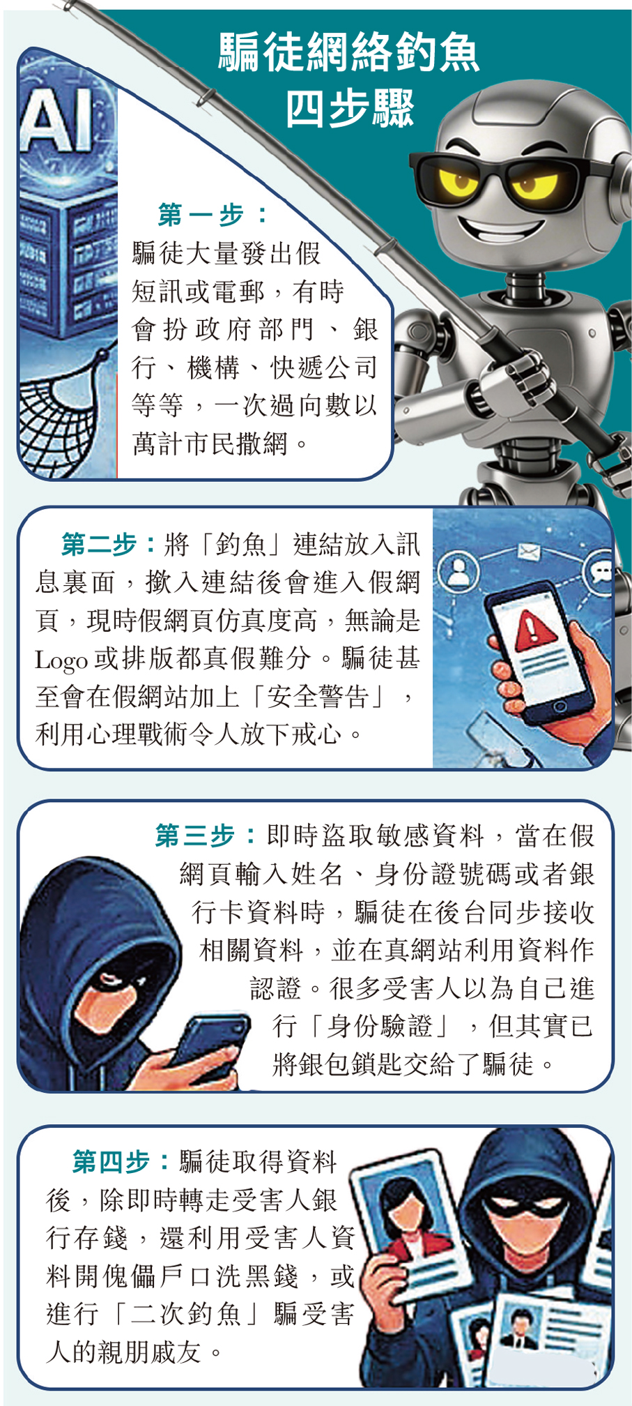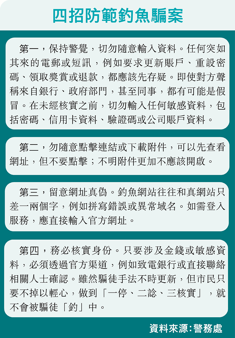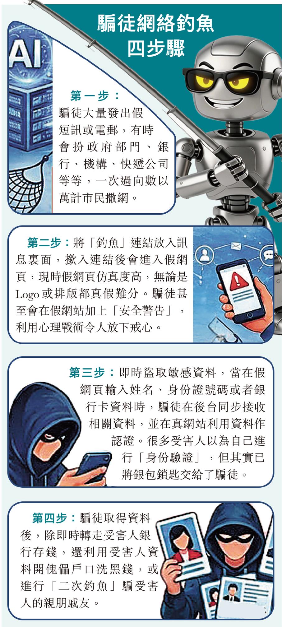 水能載舟,亦能覆舟。隨着人工智能(AI)興起,不法之徒的騙局也變得更高智能。香港去年整體科技罪案宗數按年下跌約6.9%,但損失金額卻上升23.2%,其中滲透市民日常生活的“釣魚”騙案數字,跌幅約六成,惟損失金額增加逾一倍,反映網絡罪案“貴精不貴多”,正向高度針對性、高度破壞力方向發展。警方分析發現,“釣魚”攻擊向三方面進化,包括騙徒以低成本網購“釣魚套件”配合自動化工具,大規模生成和發布海量詐騙短訊;針對受害人“量身訂造”個性化行騙“劇本”;最後是利用人工智能“深偽技術”增強仿真度,更精準、更逼真行騙,令機構員工或市民防不勝防。去年就有一名會計員中招,令公司損失1,900萬元。