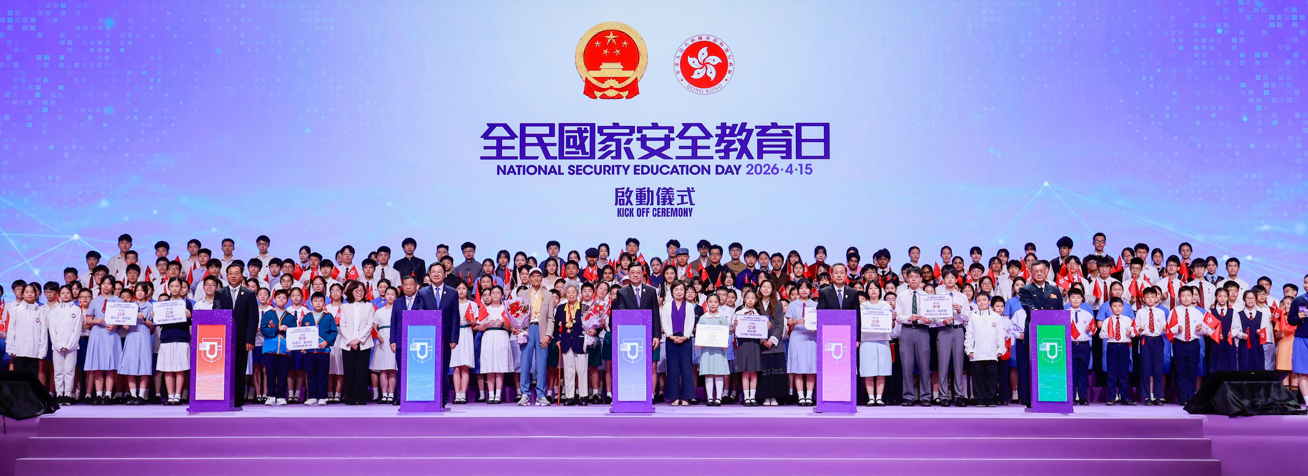 4月15日,香港特區2026年“全民國家安全教育日”活動開幕典禮在香港會展中心舉行。中央港澳工作辦公室主任、國務院港澳事務辦公室主任夏寶龍在開幕典禮上以視頻方式發表致辭。香港特別行政區行政長官、國安委主席李家超,中央政府駐港聯絡辦主任、特區國安事務顧問周霽,中央政府駐港國家安全公署署長董經緯,外交部駐港特派員公署特派員崔建春,中國人民解放軍駐香港部隊政委賴如鑫等擔任主禮嘉賓並致辭。