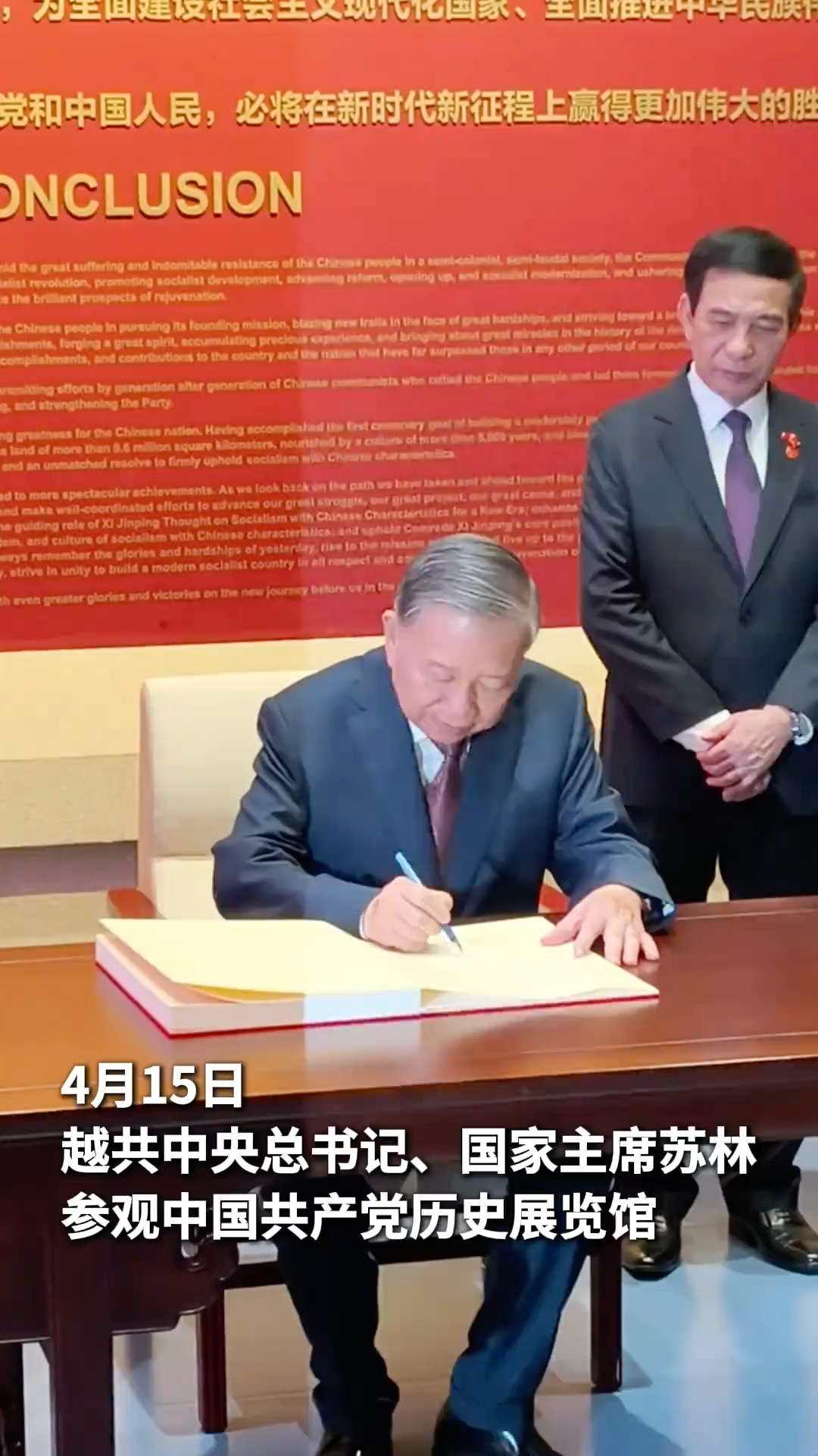 4月15日,位於北京中軸線北端延長線上的中國共產黨歷史展覽館迎來一位遠道而來的客人——應習近平總書記、國家主席邀請正在對中國進行國事訪問的越共中央總書記、國家主席蘇林。