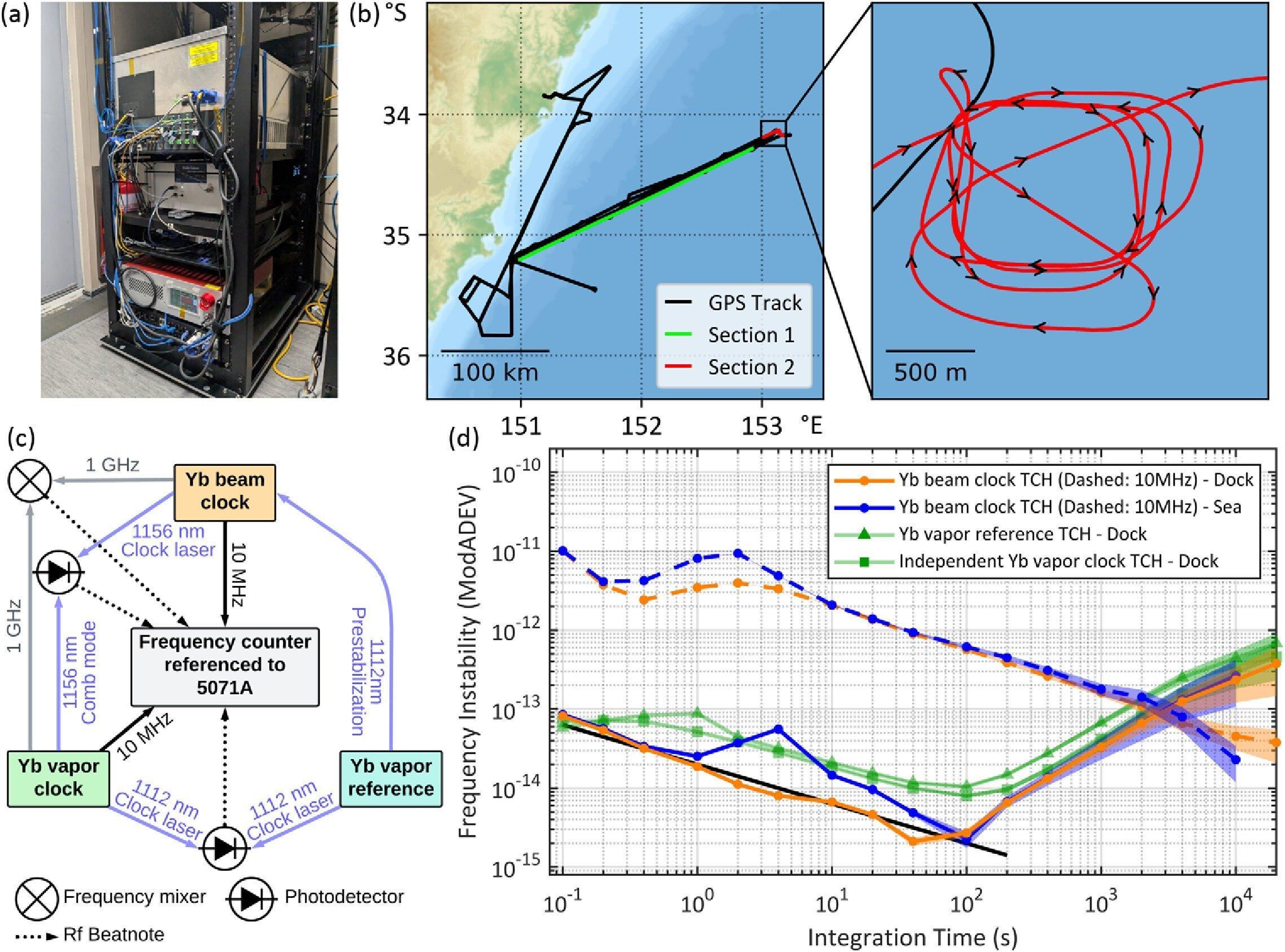為驗證性能,研究團隊於2024年7月將該設備運至澳大利亞皇家海軍提供的一艘艦船上,在海上連續運行數天。結果顯示,在振動、晃動及溫度變化等複雜海洋環境中,該原子鐘仍保持與實驗室測試一致的高性能。據介紹,這是激光冷卻光學原子鐘首次在海上實現運行驗證。