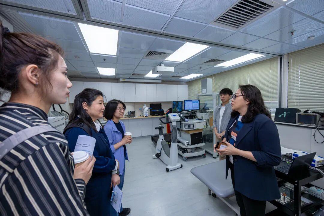 3月26日上午,代表團依次參觀了理大沉浸式虛擬實境系統、生命科學中心實驗室、食品科學與營養研究實驗室及示範廚房、心肺功能及運動生理學實驗室、心理彈跳站、眼科視光學診所等多個科研與實驗平台,近距離了解理大在人工智能、生物醫學工程、食品營養、康復治療、眼健康等領域的研發實力、技術儲備與實驗條件,推動雙方在具體科研課題、技術研發等方面的精準對接與深度合作。