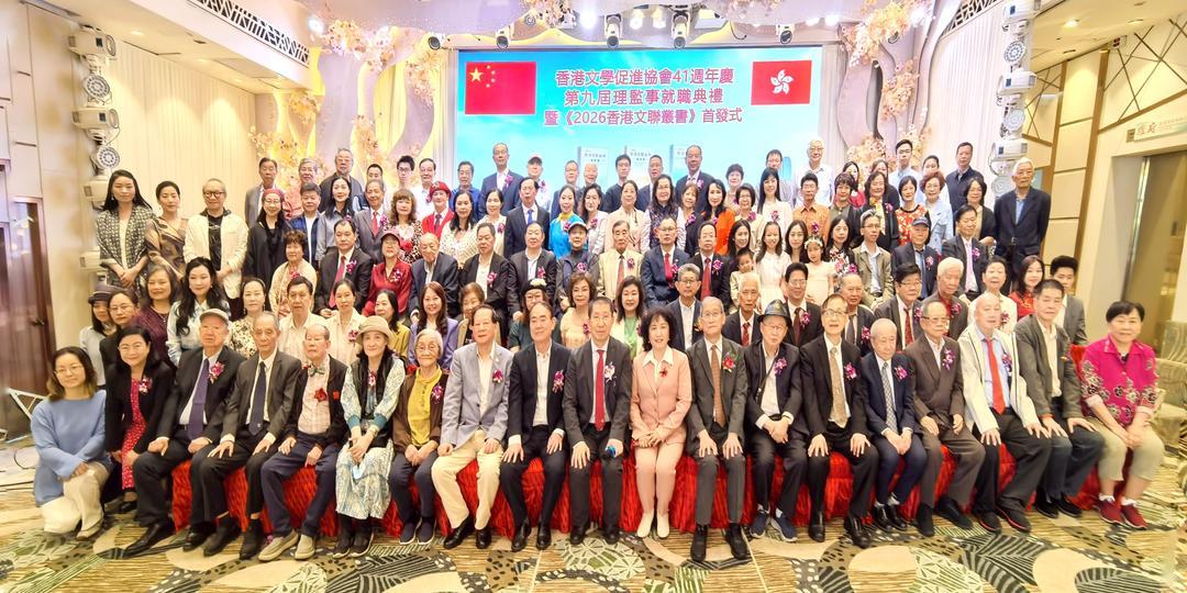 4月25日,香港文學促進協會舉行41周年慶典、第九屆理監事會就職禮暨《2026香港文聯叢書》首發式。蔡麗雙連任會長, 蔡曜陽任執行會長 。現場賓主歡聚, 共賀協會四十一載風雨兼程,見證文壇碩果再譜新篇。