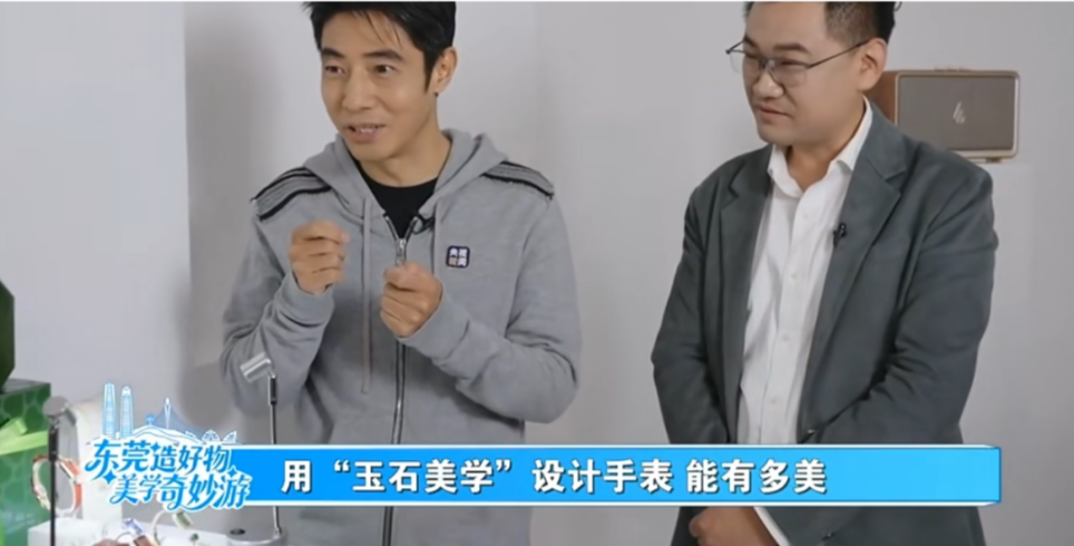 在120分鐘直播中,撒貝寧通過“靈感源泉”“數智造物”“潮流好物”三重挑戰,帶領觀眾沉浸式領略東莞製造美學。直播第17分鐘,位於鳳崗鎮的東莞得利鐘錶有限公司製造的腕錶產品登場亮相,品牌將傳統鎖文化巧妙融入設計,讓腕錶兼具計時功能與溫潤玉石首飾質感,使傳統文化元素成為日常穿搭的時尚點綴。